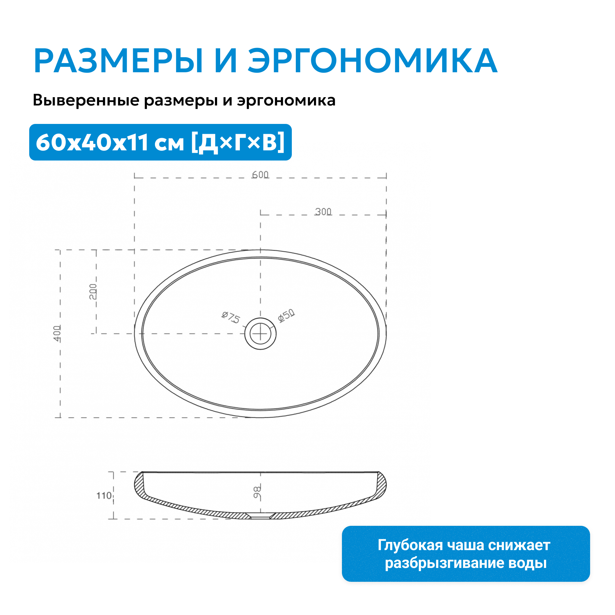 Раковина накладная ABBER Stein AS2614 белая матовая
