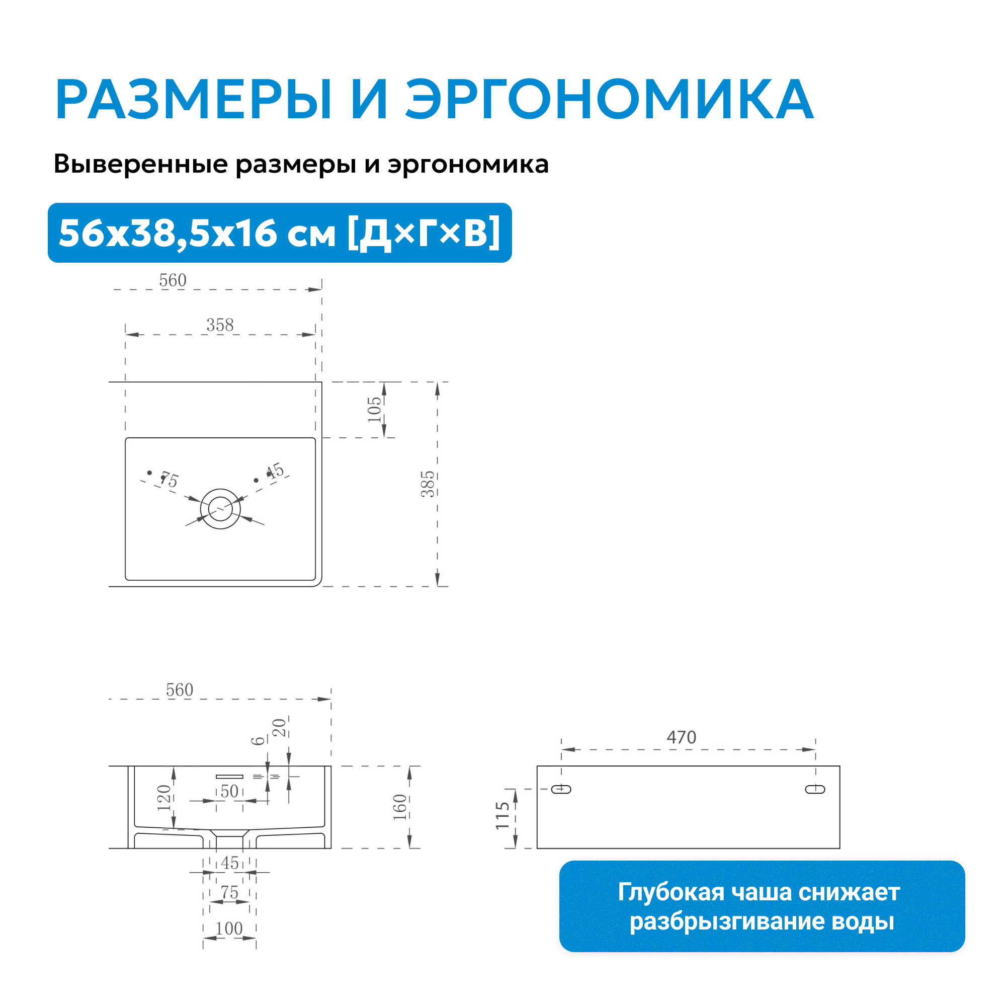 Раковина подвесная ABBER Stein AS2644 L белая матовая