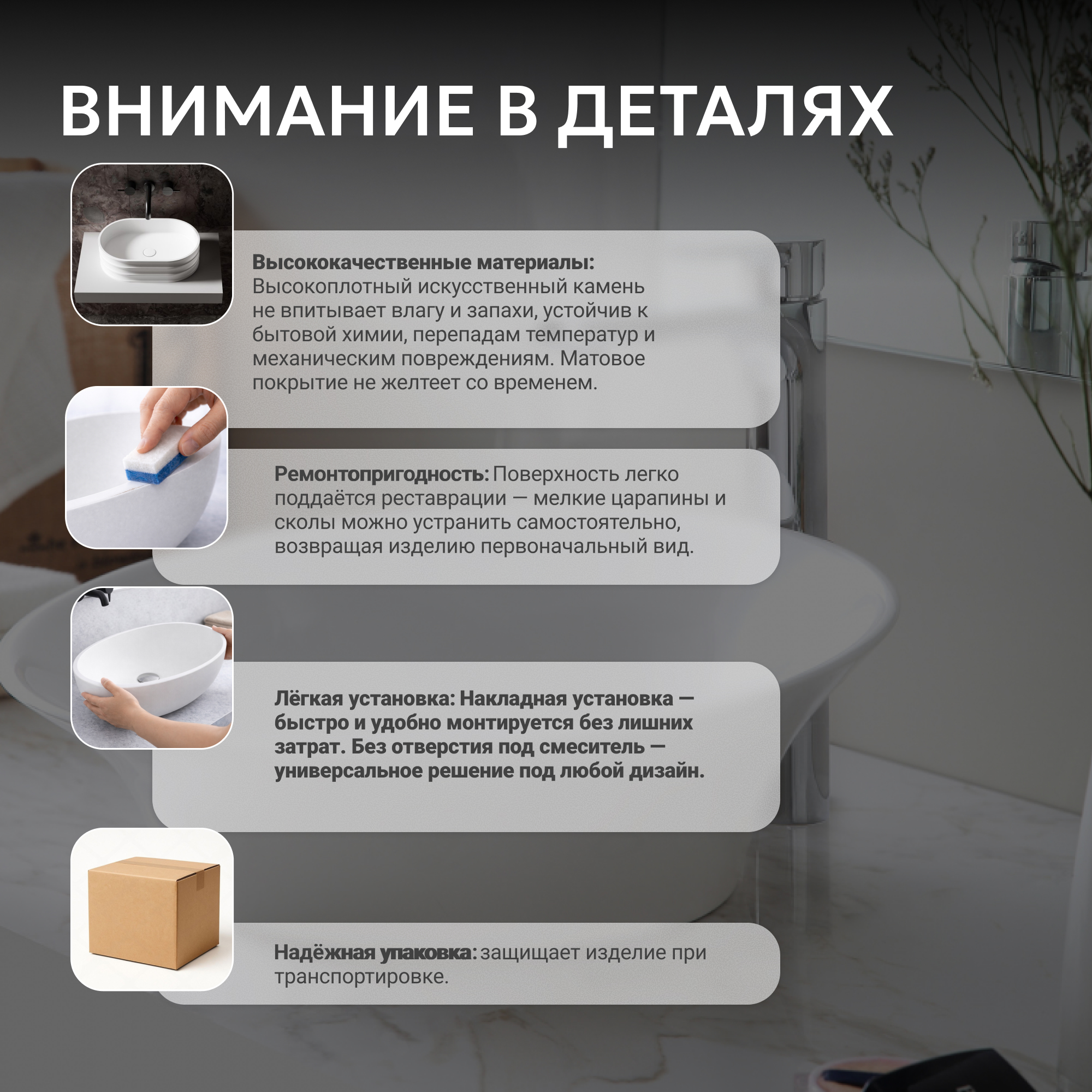 Раковина накладная ABBER Stein AS2607 белая матовая