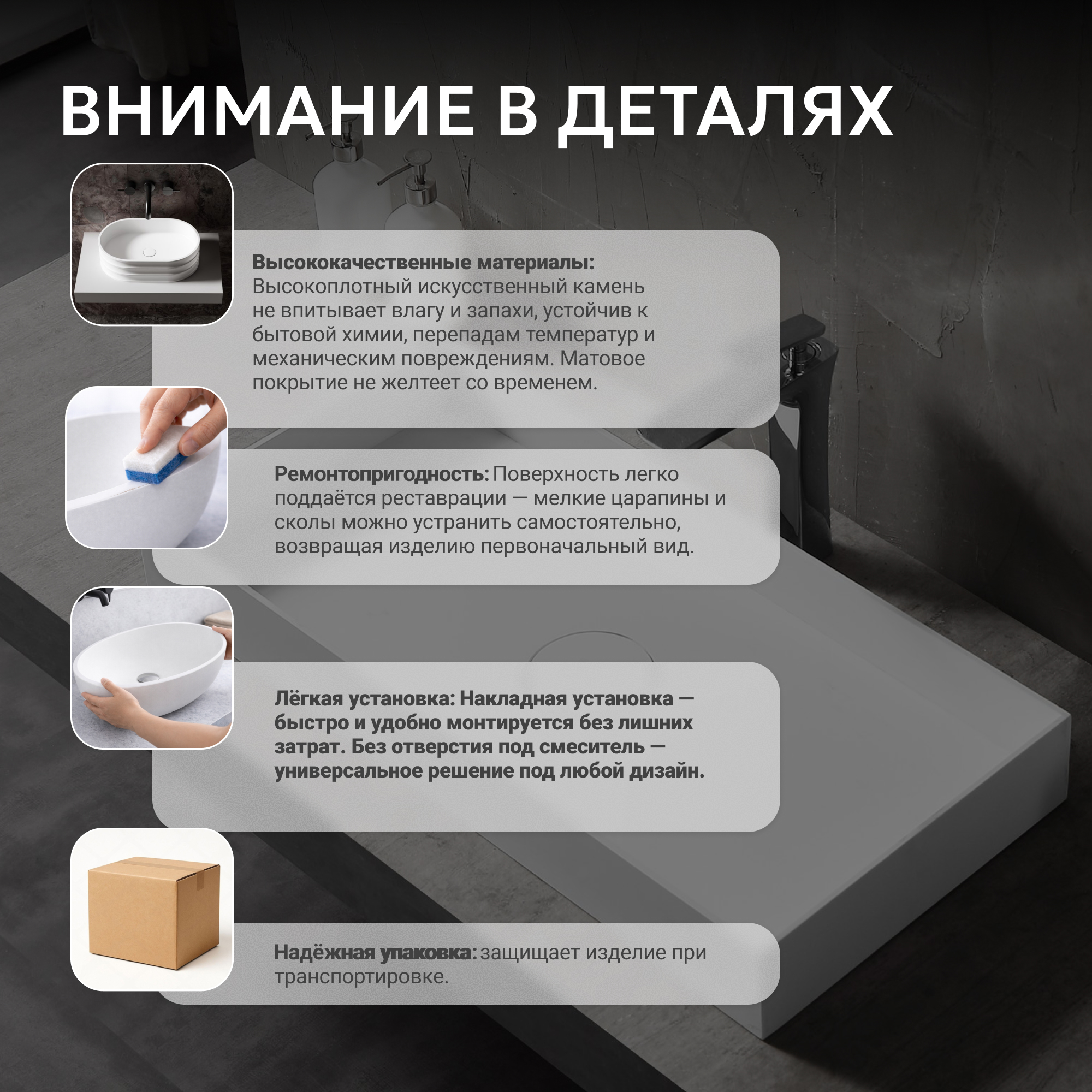 Раковина накладная ABBER Stein AS2622 белая матовая