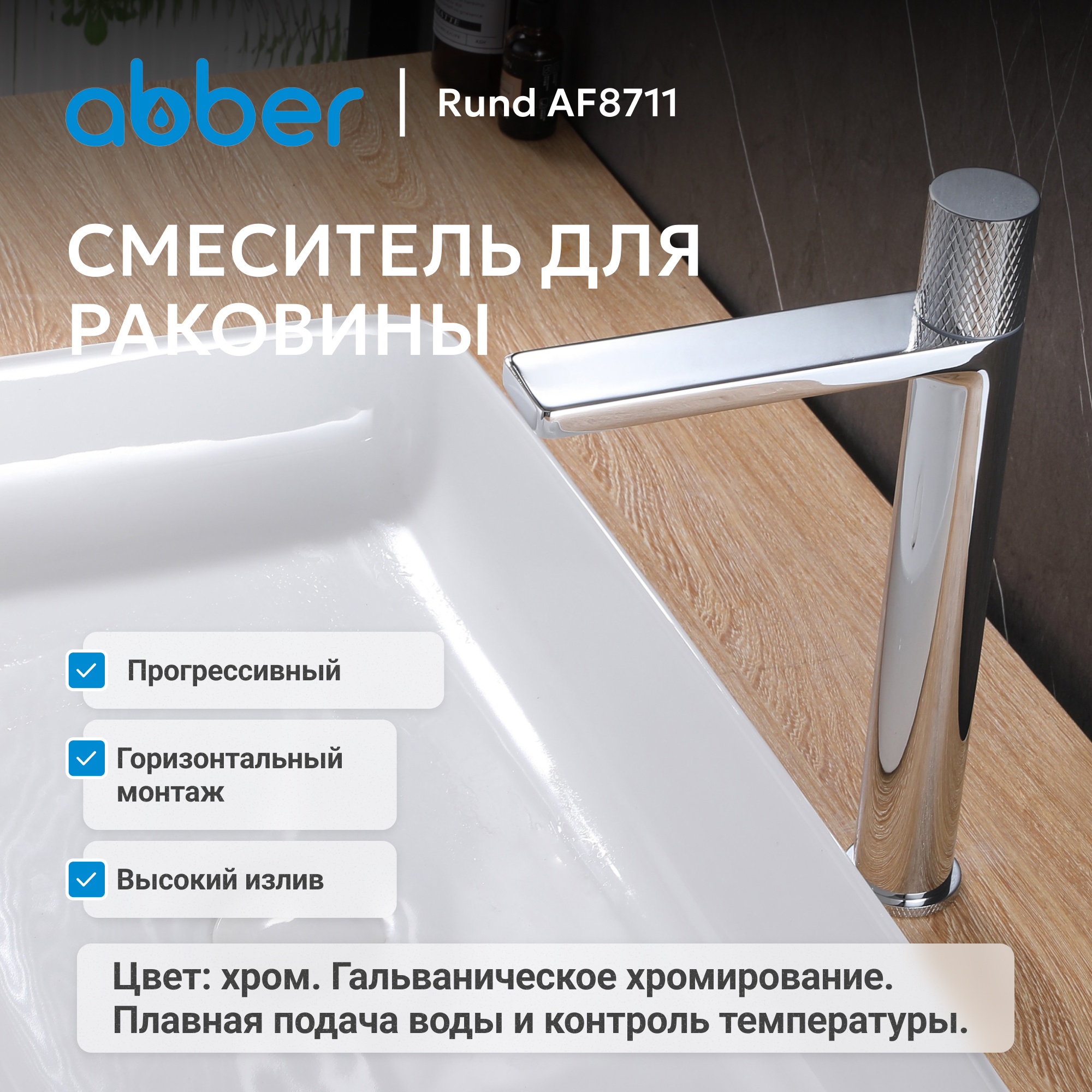 Смеситель ABBER Rund AF8711 для накладной раковины, хром