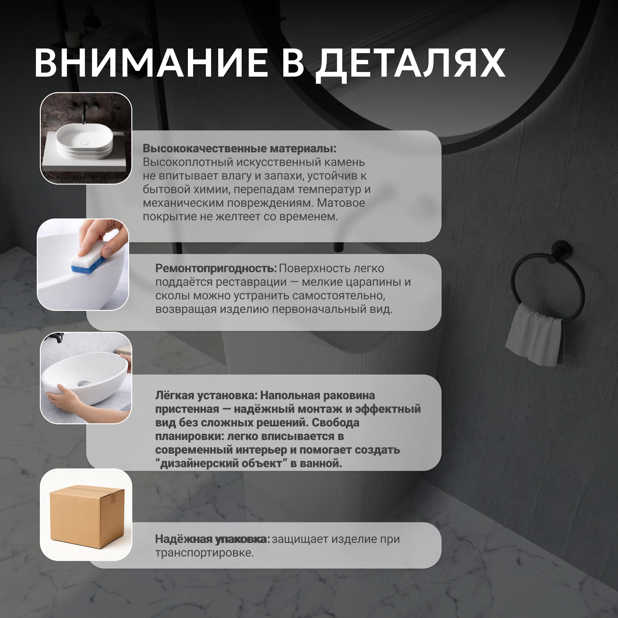 Раковина отдельностоящая ABBER Stein AS2505-H белая матовая