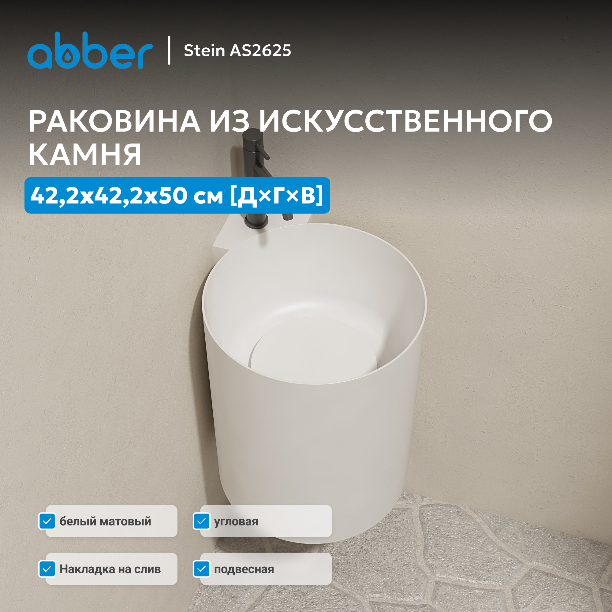 Раковина подвесная ABBER Stein AS2625 белая матовая