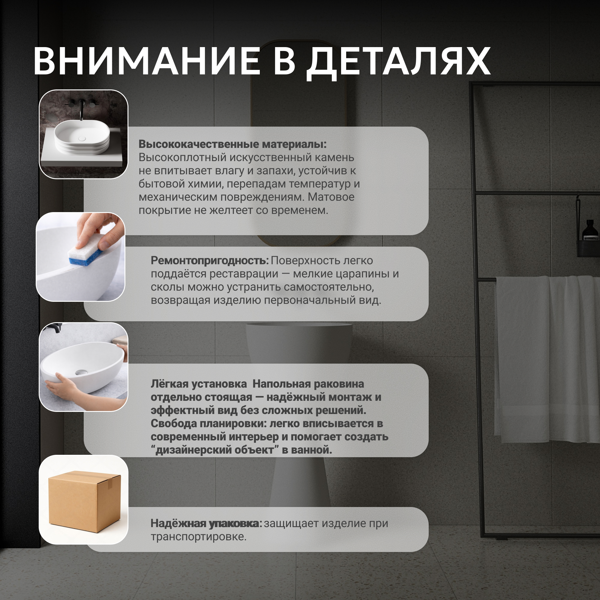 Раковина отдельностоящая ABBER Stein AS2507 белая матовая