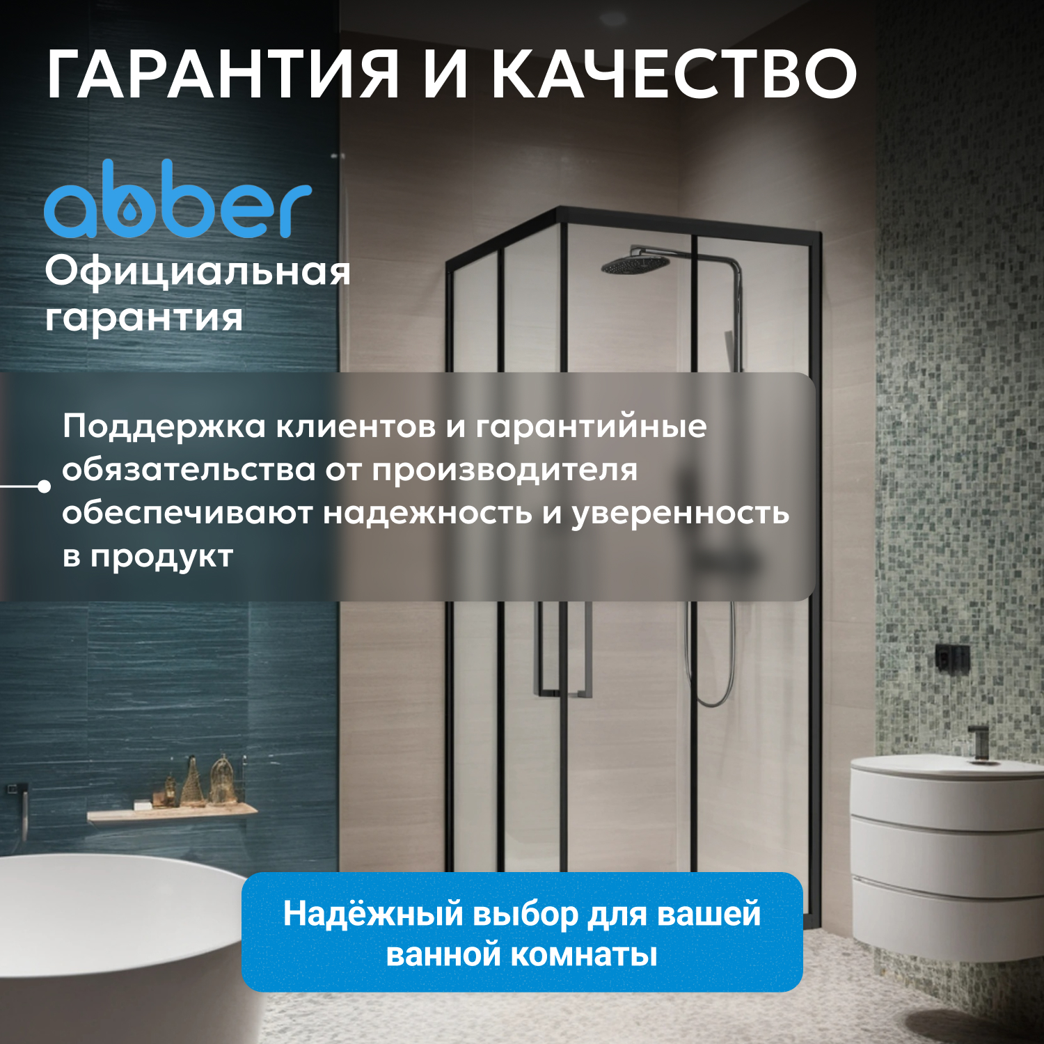 Бренд ABBER производит душевые уголки по стандартам немецкого качества, что снижает риск неисправностей. Металлические детали и надежная фурнитура обеспечивают долговечность при интенсивном ежедневном использовании. Модель сочетает надежность материалов, прочность конструкции, универсальный дизайн и удобство обслуживания в российских условиях.