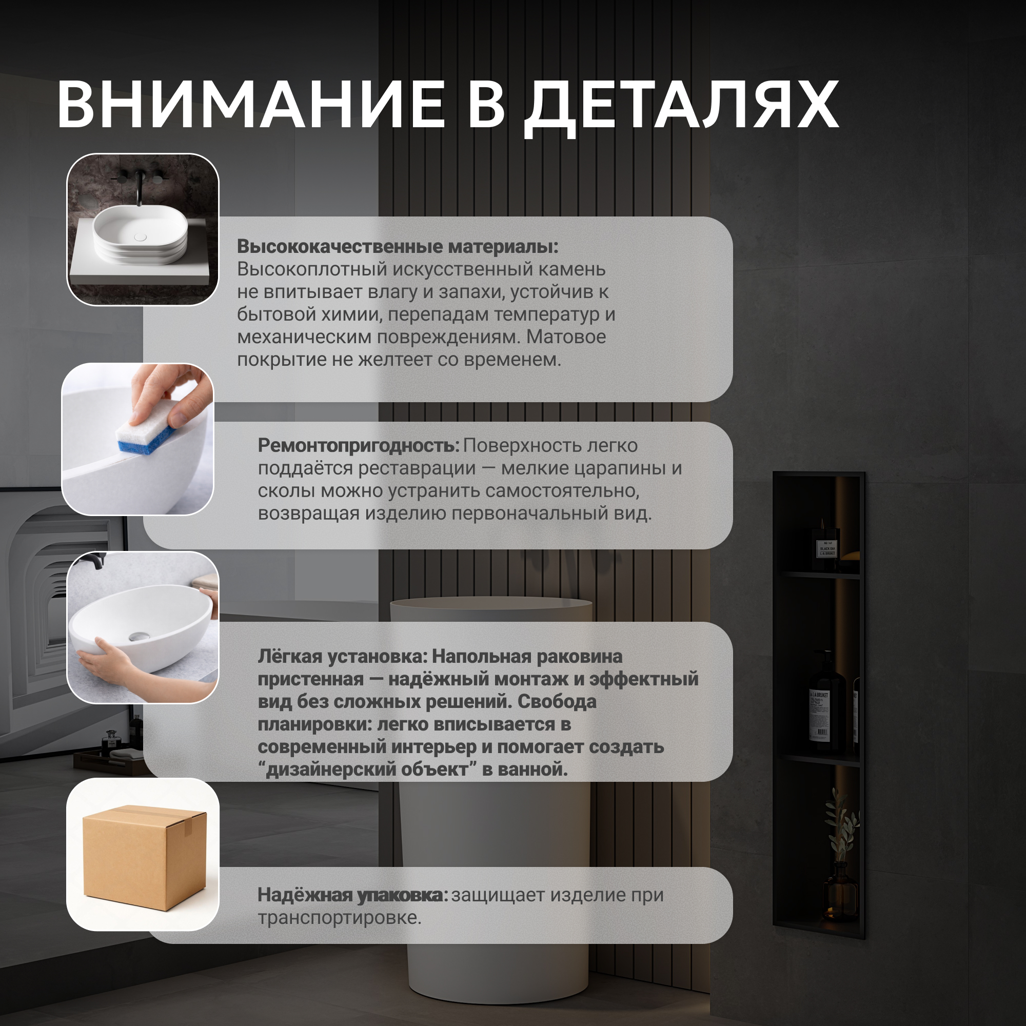 Раковина отдельностоящая ABBER Stein AS2506-H белая матовая