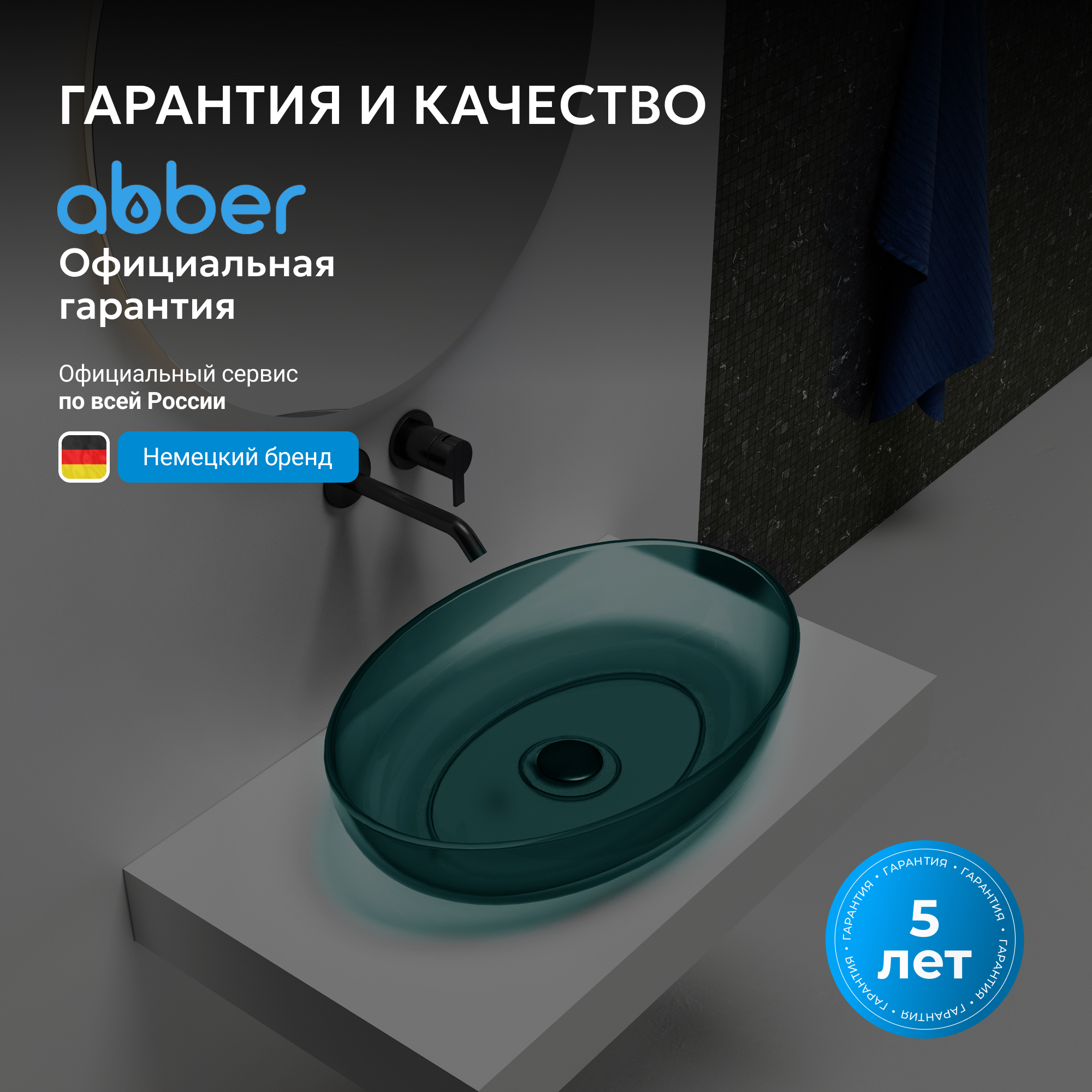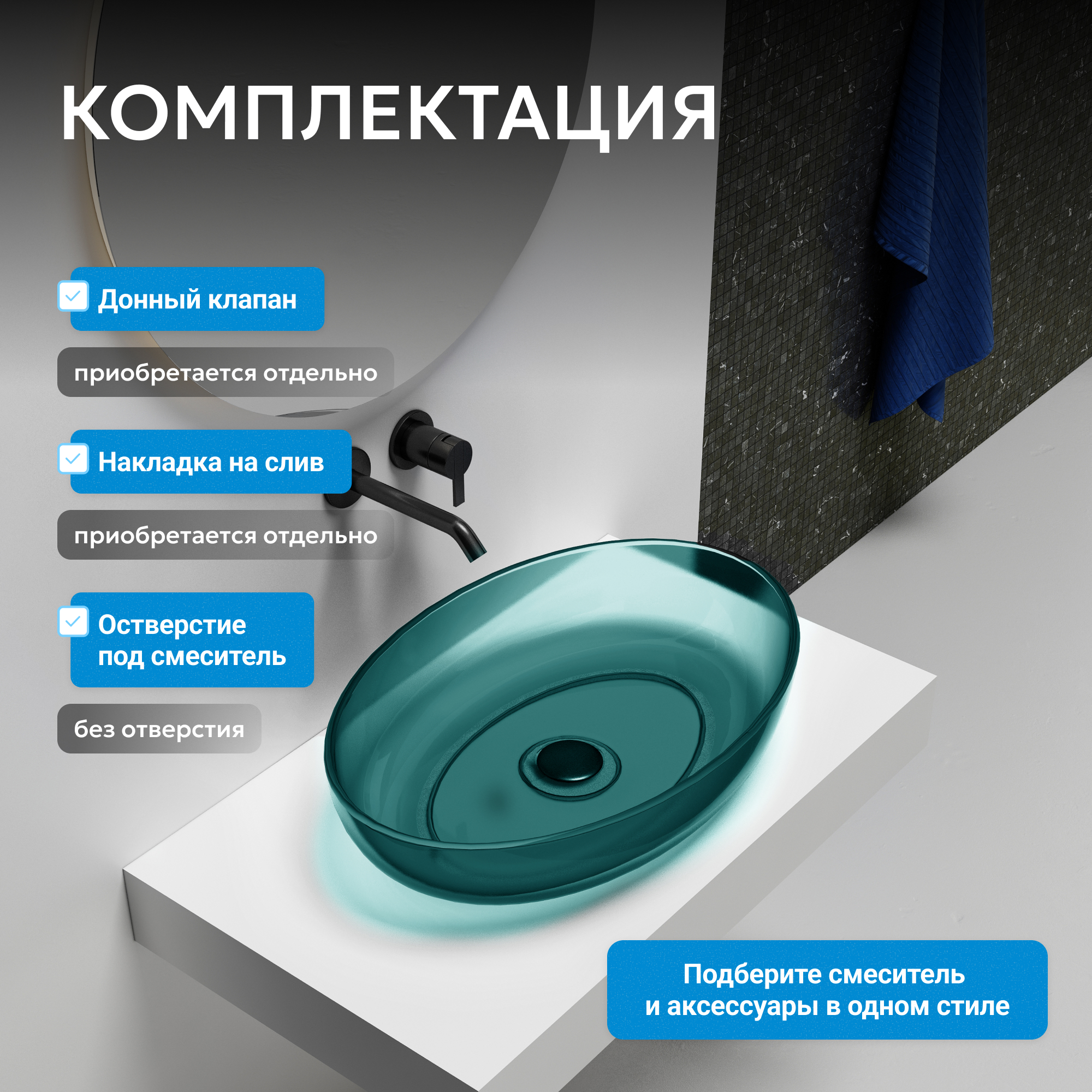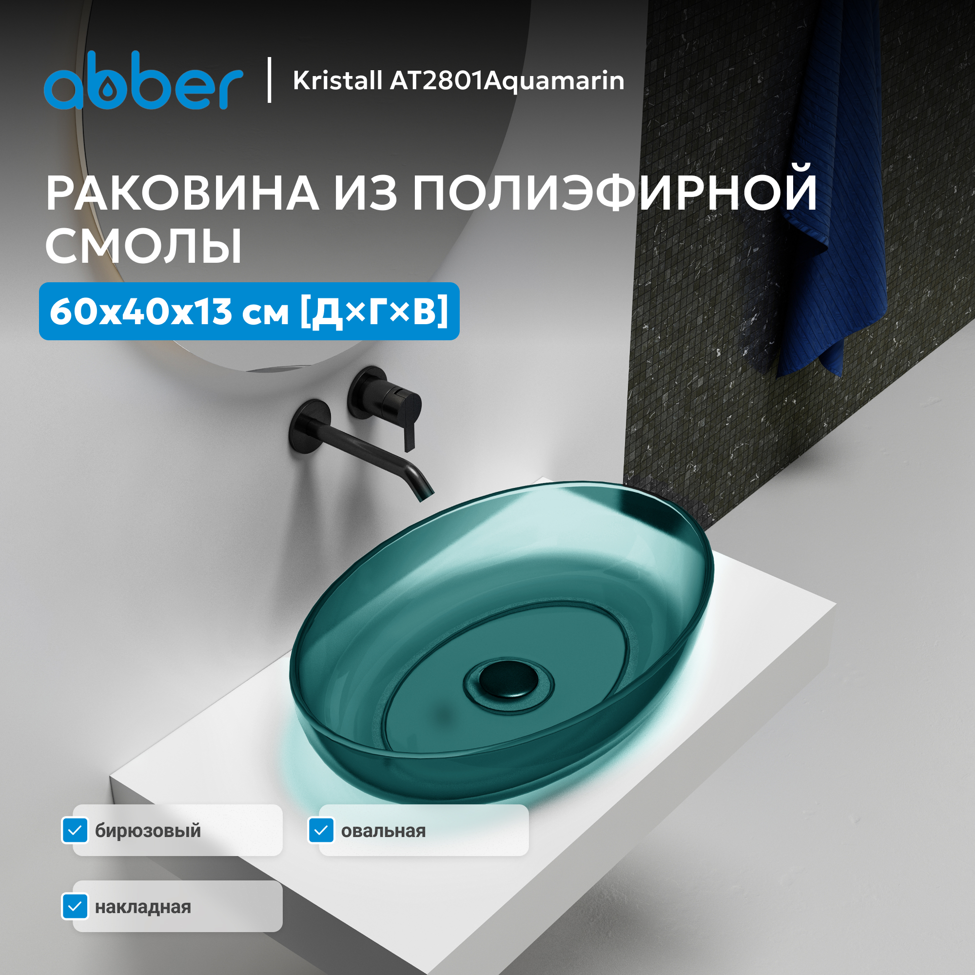 Раковина накладная прозрачная ABBER Kristall AT2801Aquamarin бирюзовая