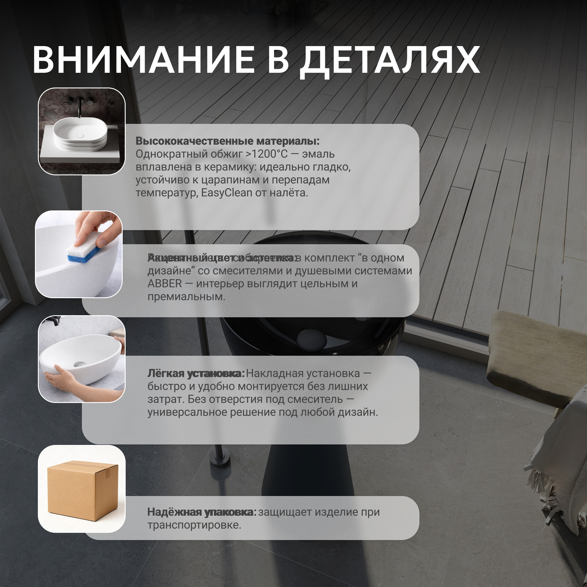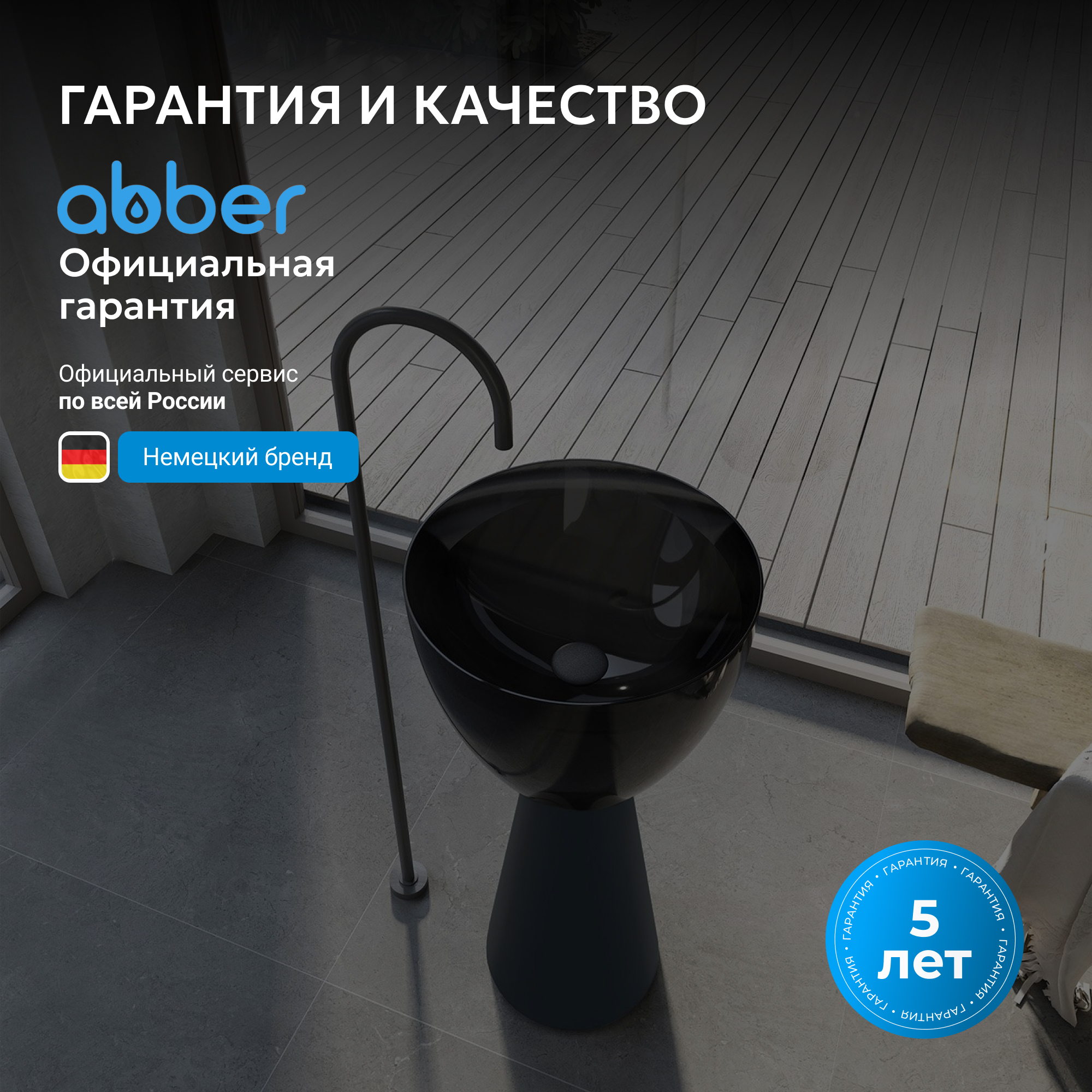 Раковина отдельностоящая прозрачная ABBER Kristall AT2703Onyx-Black черный/черный матовый