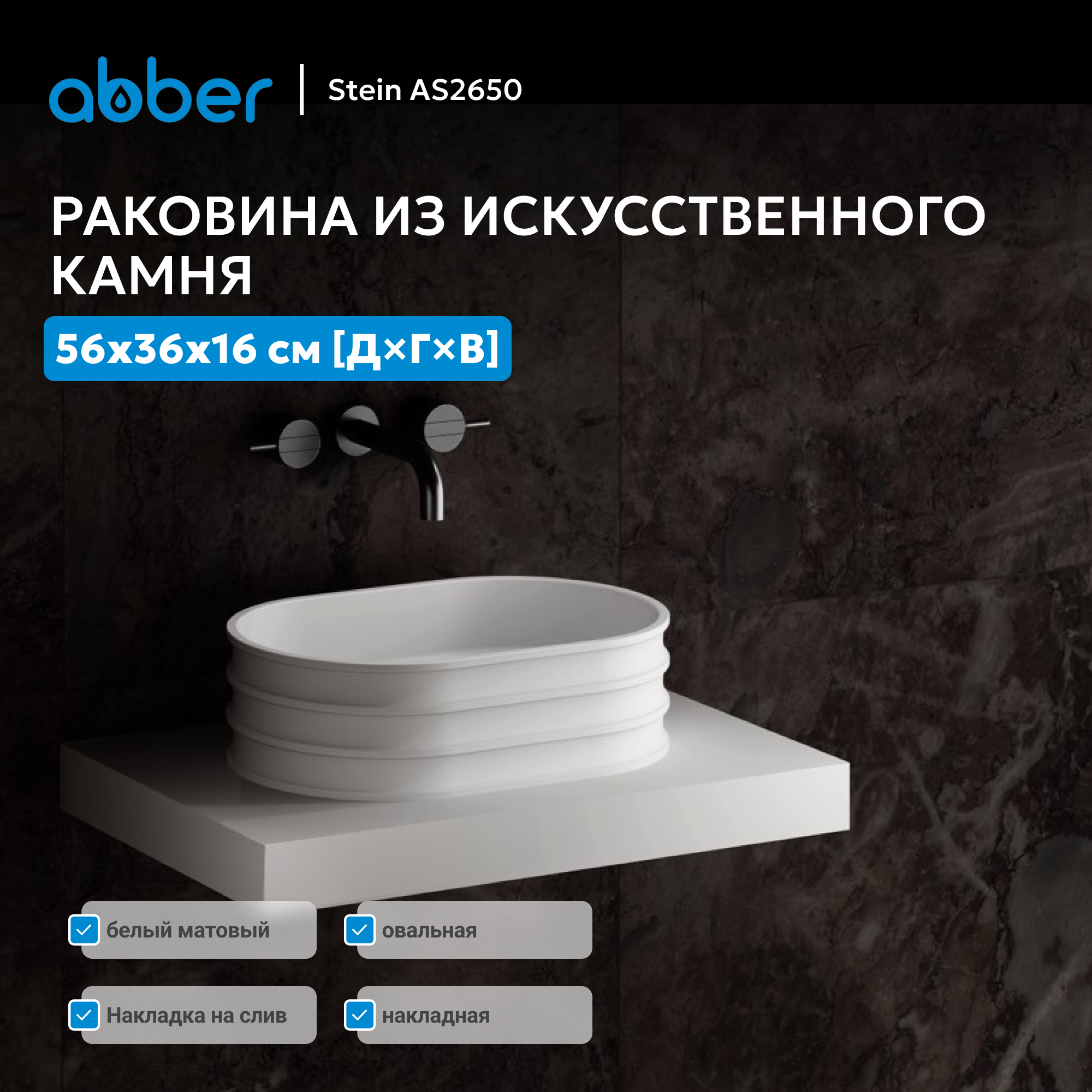 Раковина накладная ABBER Stein AS2650 белая матовая
