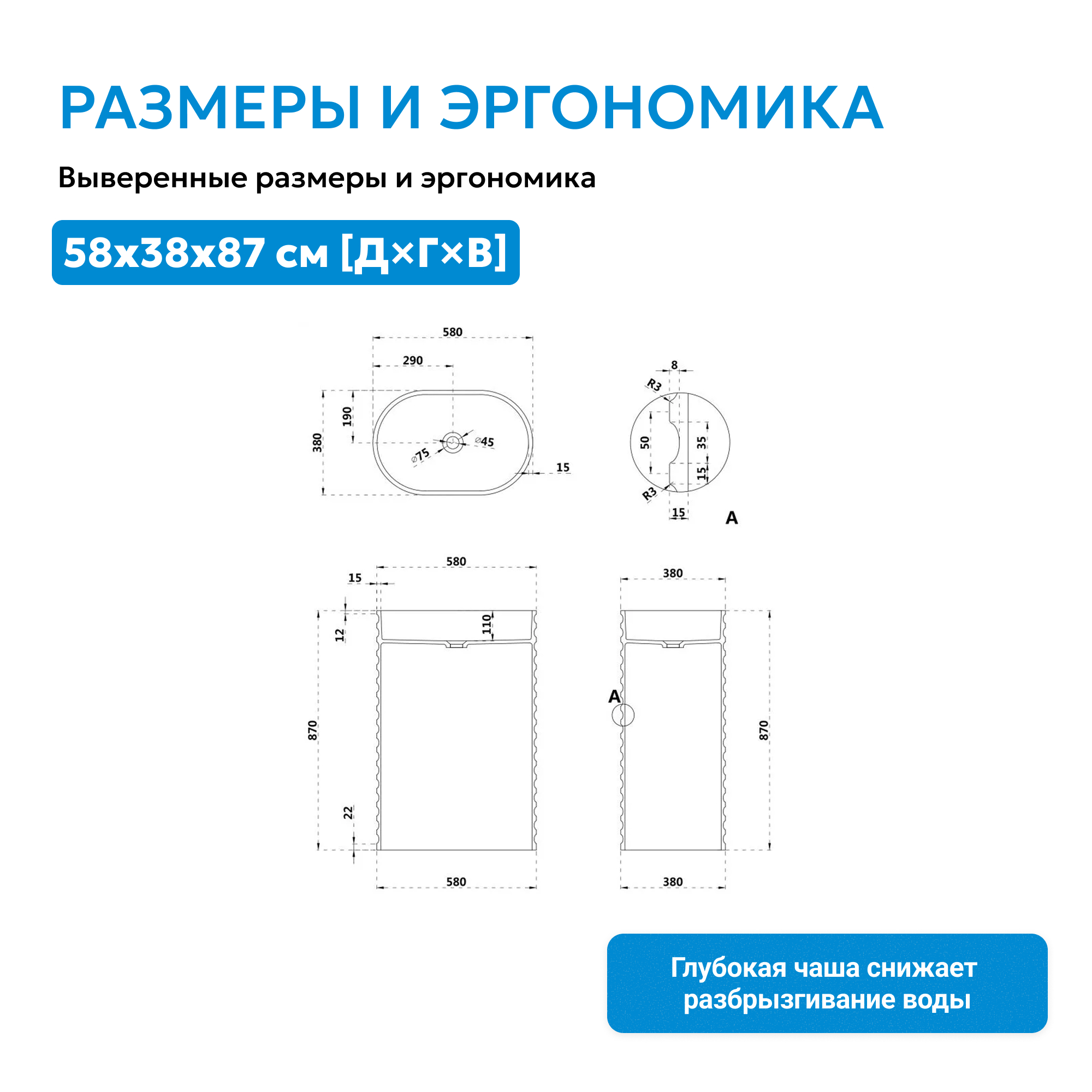 Раковина отдельностоящая ABBER Stein AS2550-H белая матовая