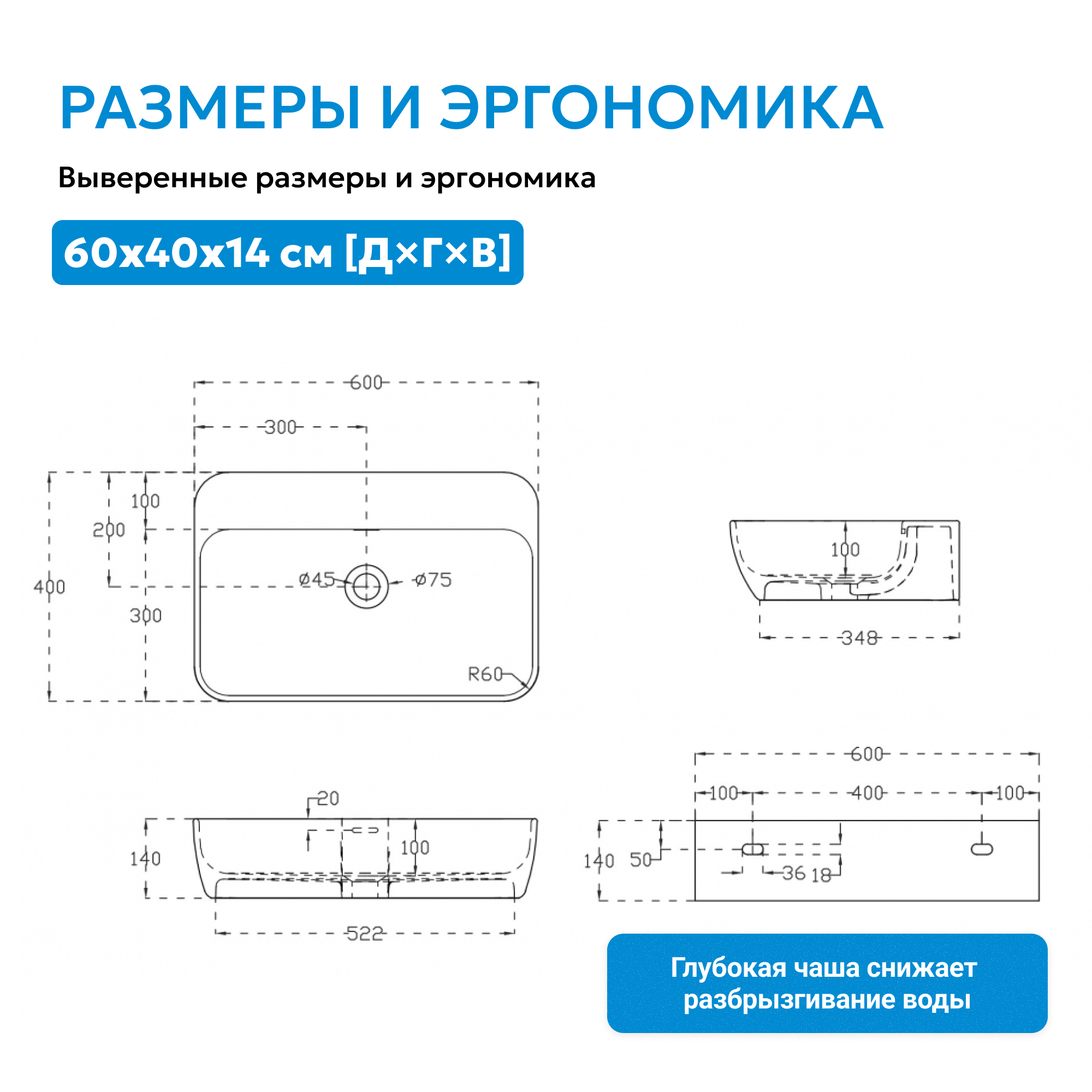 Раковина подвесная ABBER Stein AS2654 белая матовая