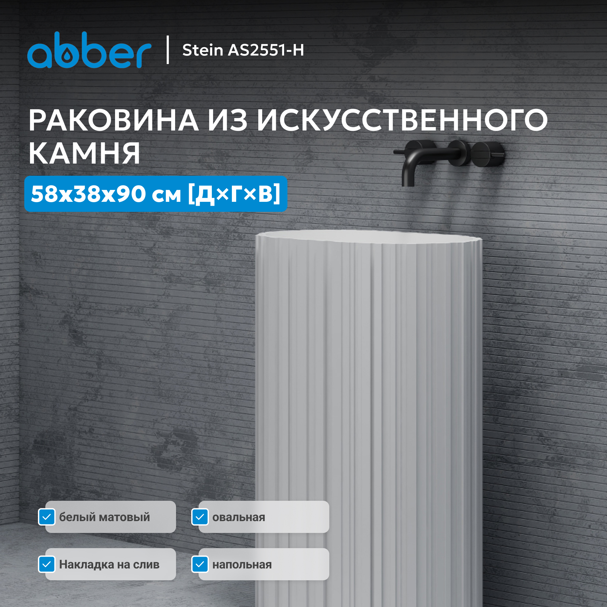 Раковина отдельностоящая ABBER Stein AS2551-H белая матовая