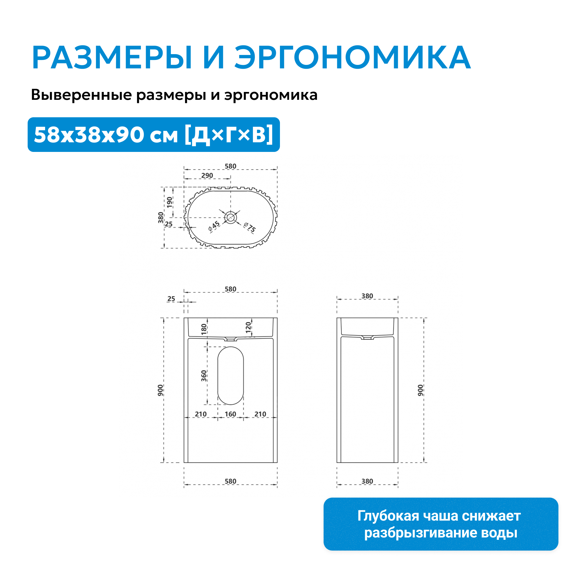раковина с техническим отверстием для монтажа у стены