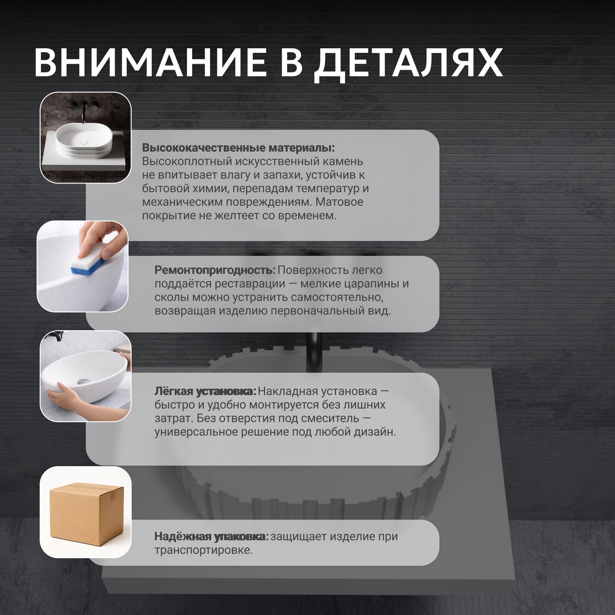накладка на слив из искусственного камня