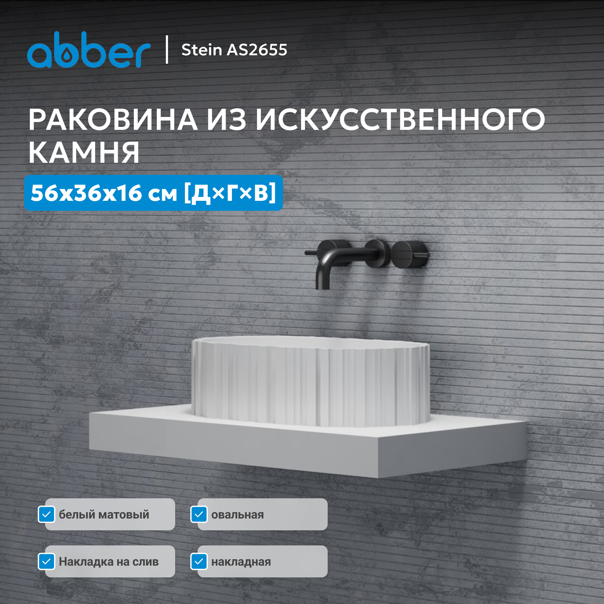 Раковина накладная ABBER Stein AS2655 белая матовая