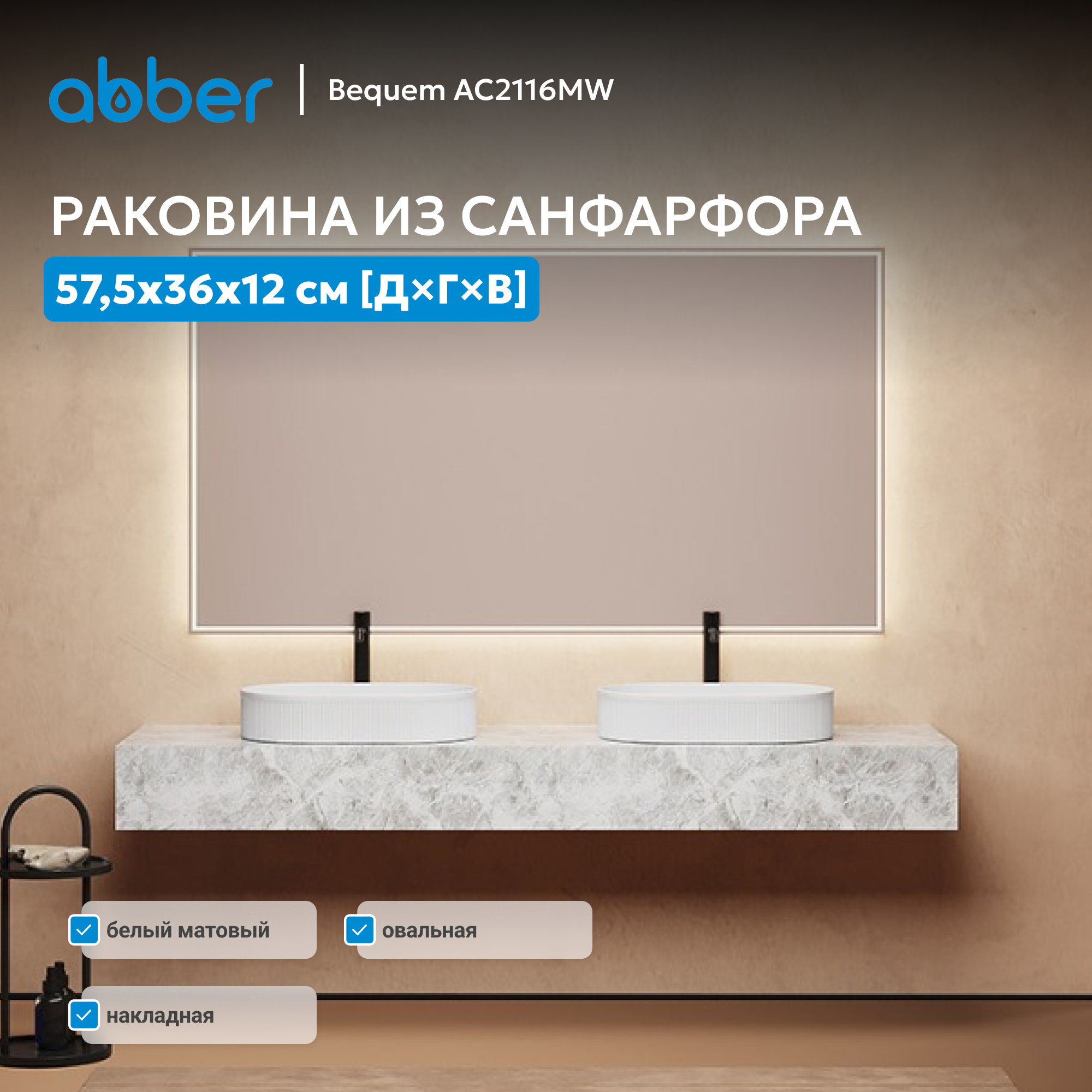 Раковина накладная ABBER Bequem AC2116MW белая матовая