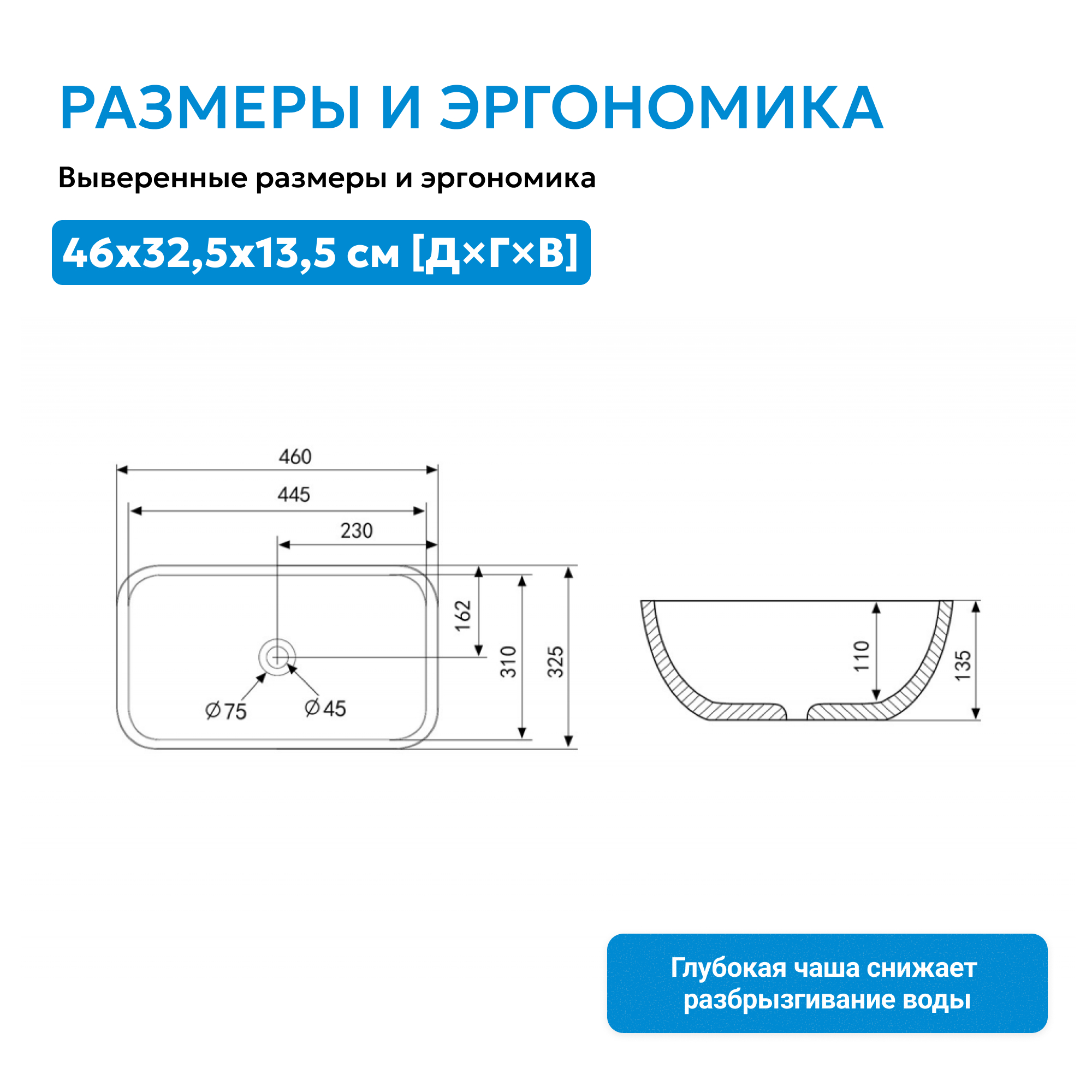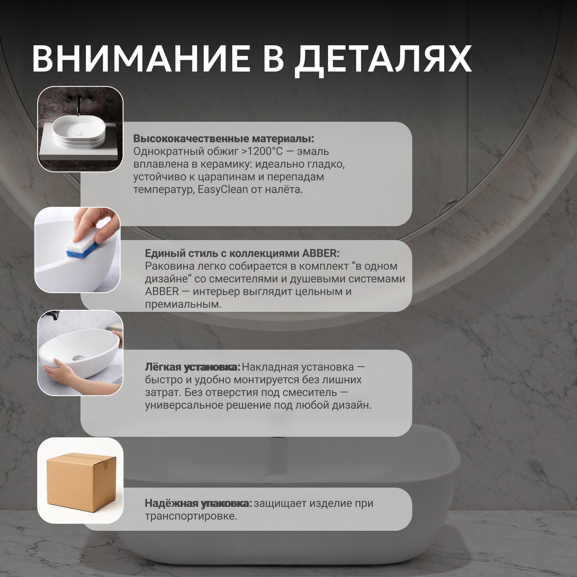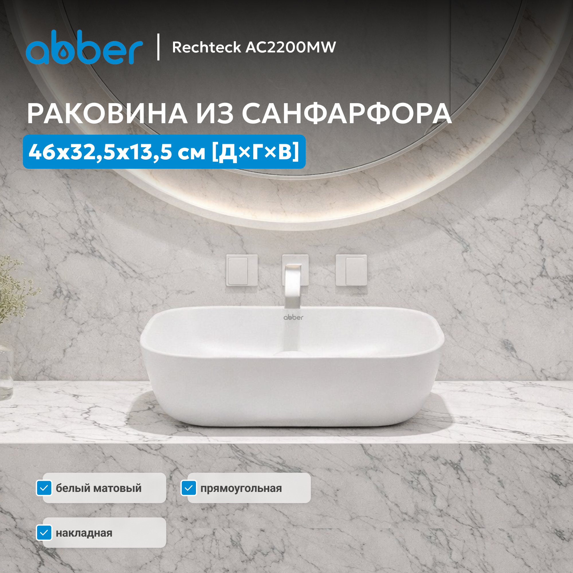Раковина накладная ABBER Rechteck AC2200MW белая матовая