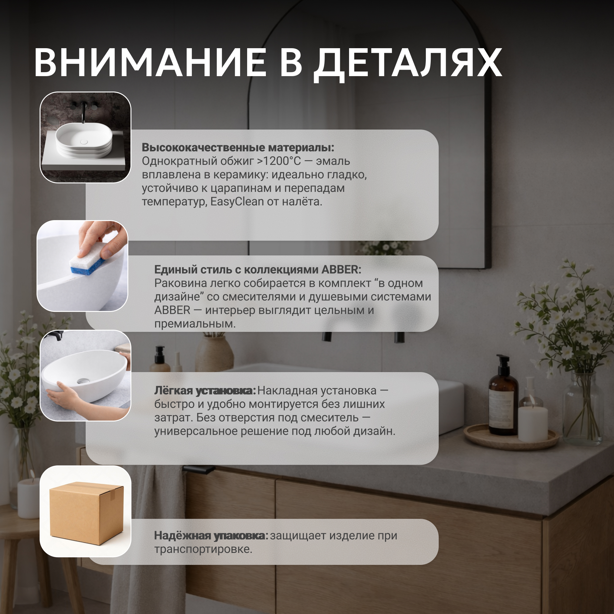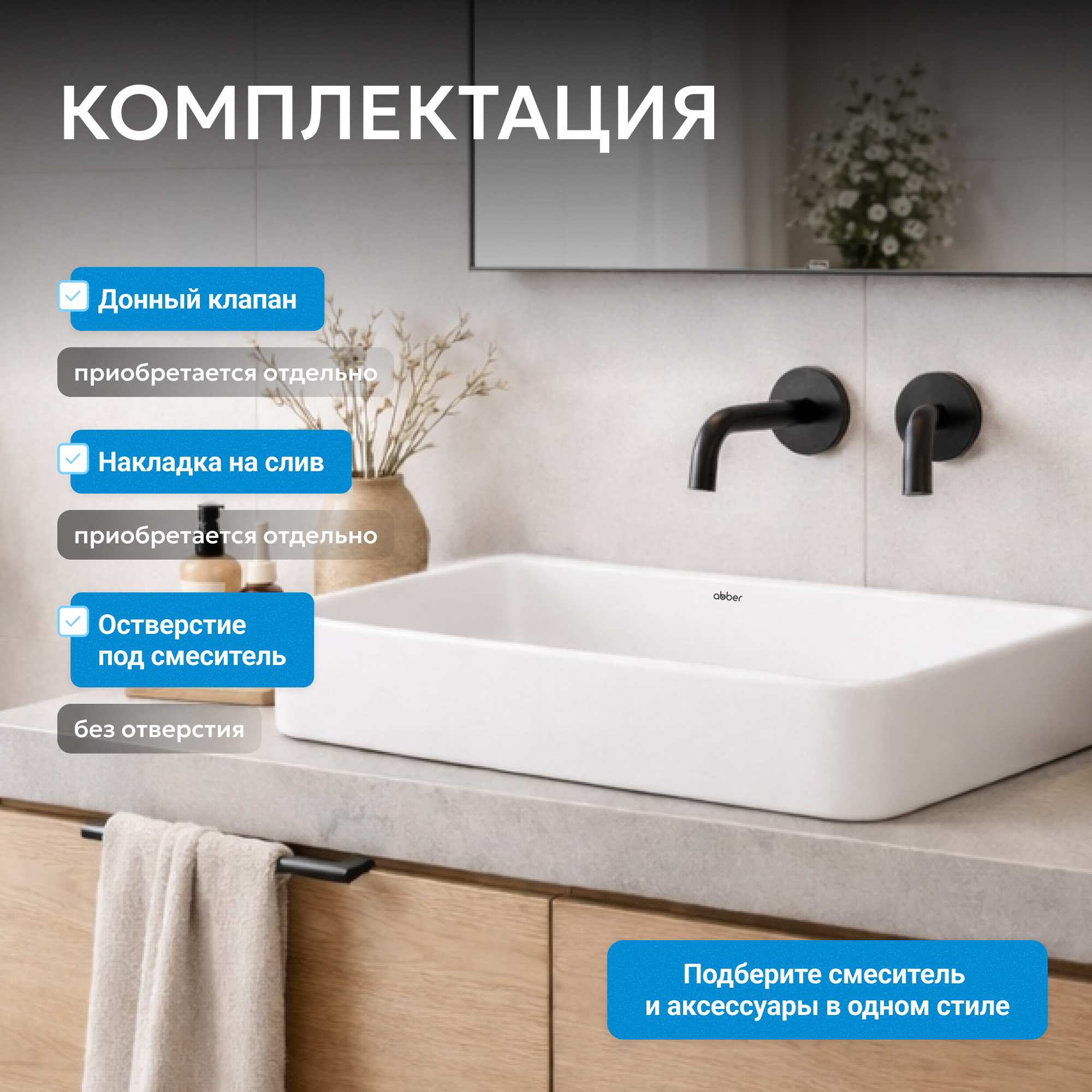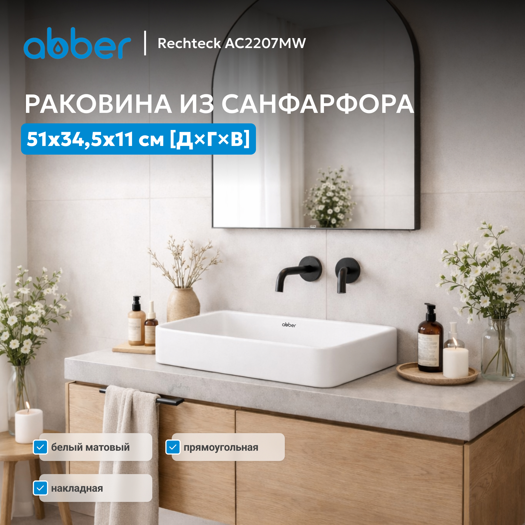 Раковина накладная ABBER Rechteck AC2207MW белая матовая