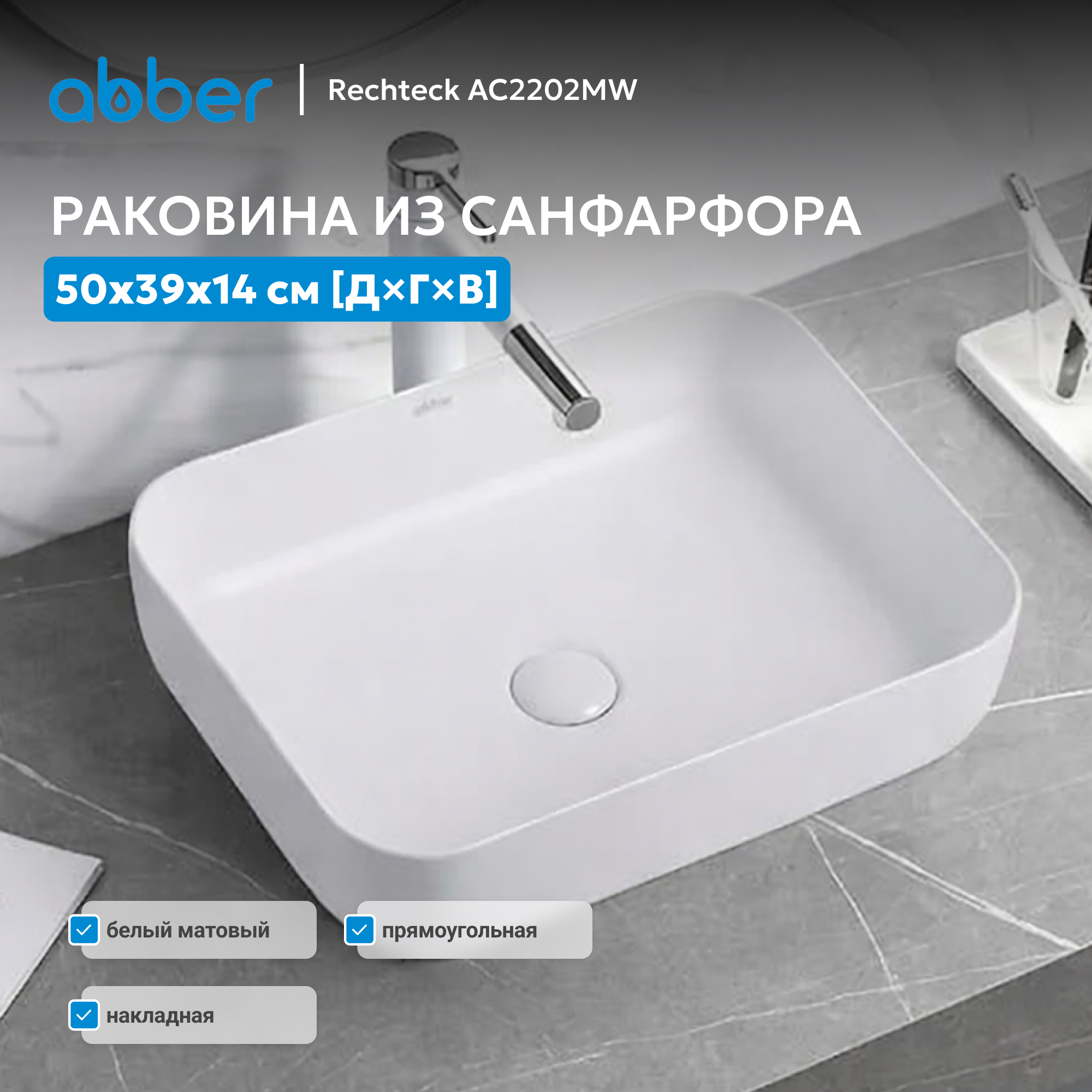 Раковина накладная ABBER Rechteck AC2202MW белая матовая
