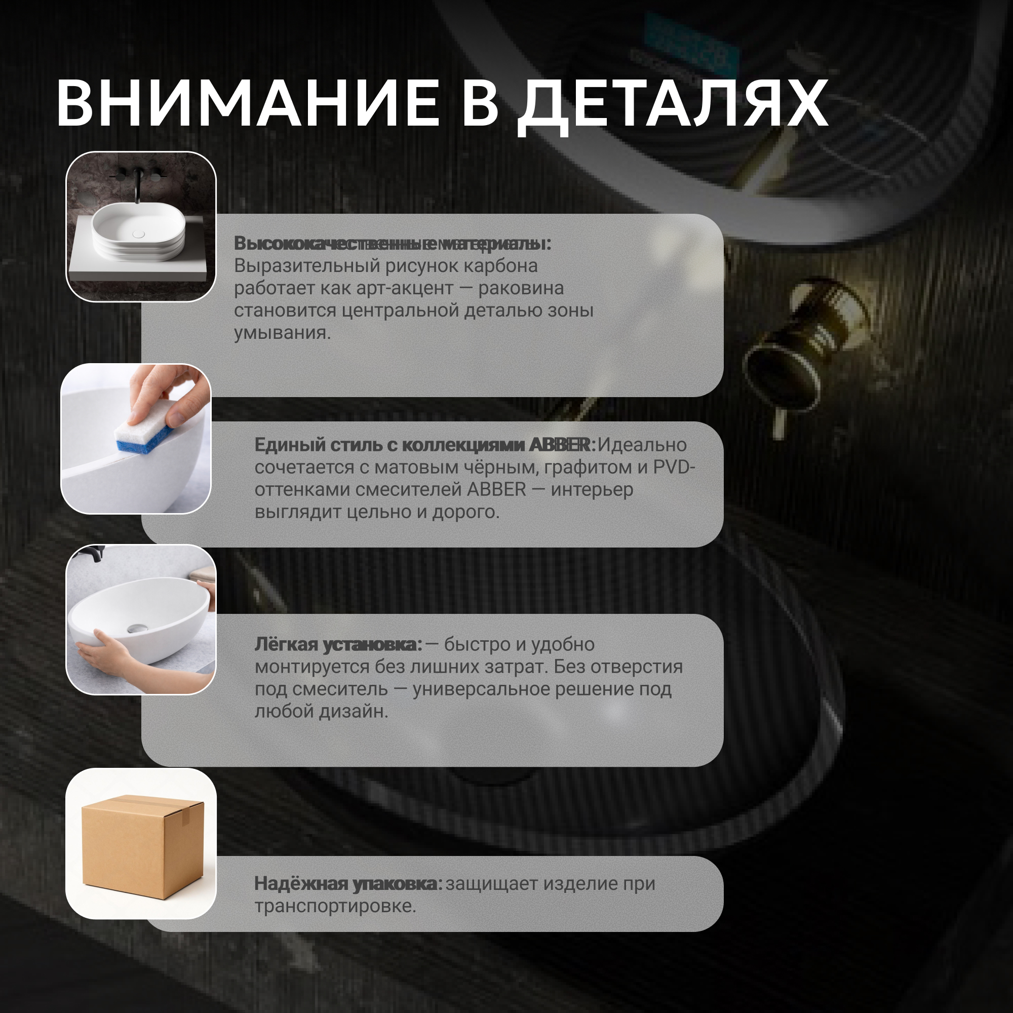 Раковина накладная карбоновая ABBER Karbon AK2042 черная