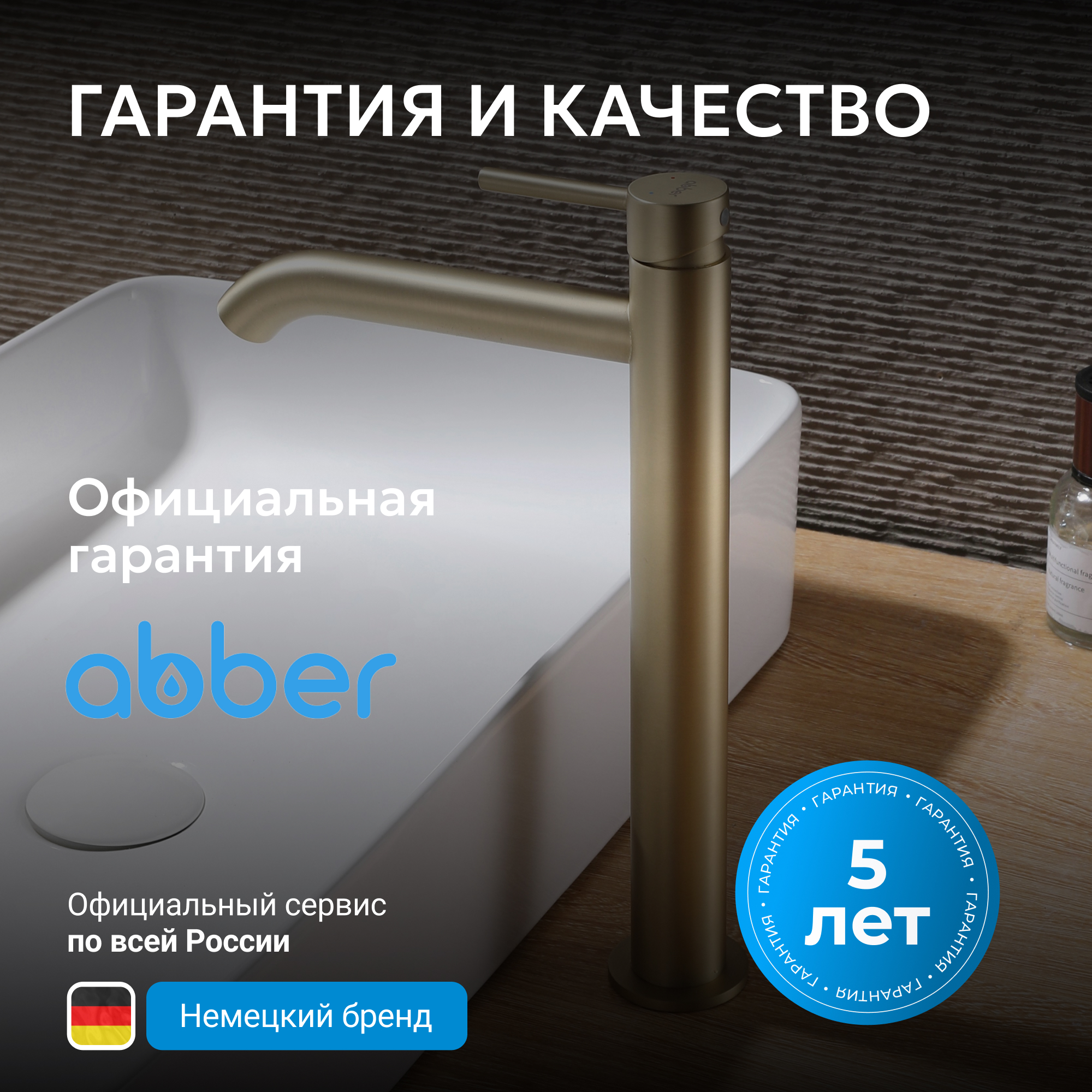 Смеситель ABBER Wasser Kreis AF8111G для накладной раковины, золото матовое