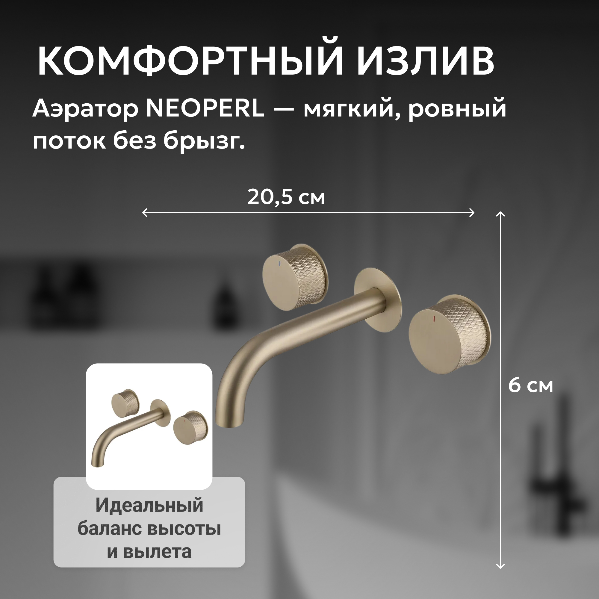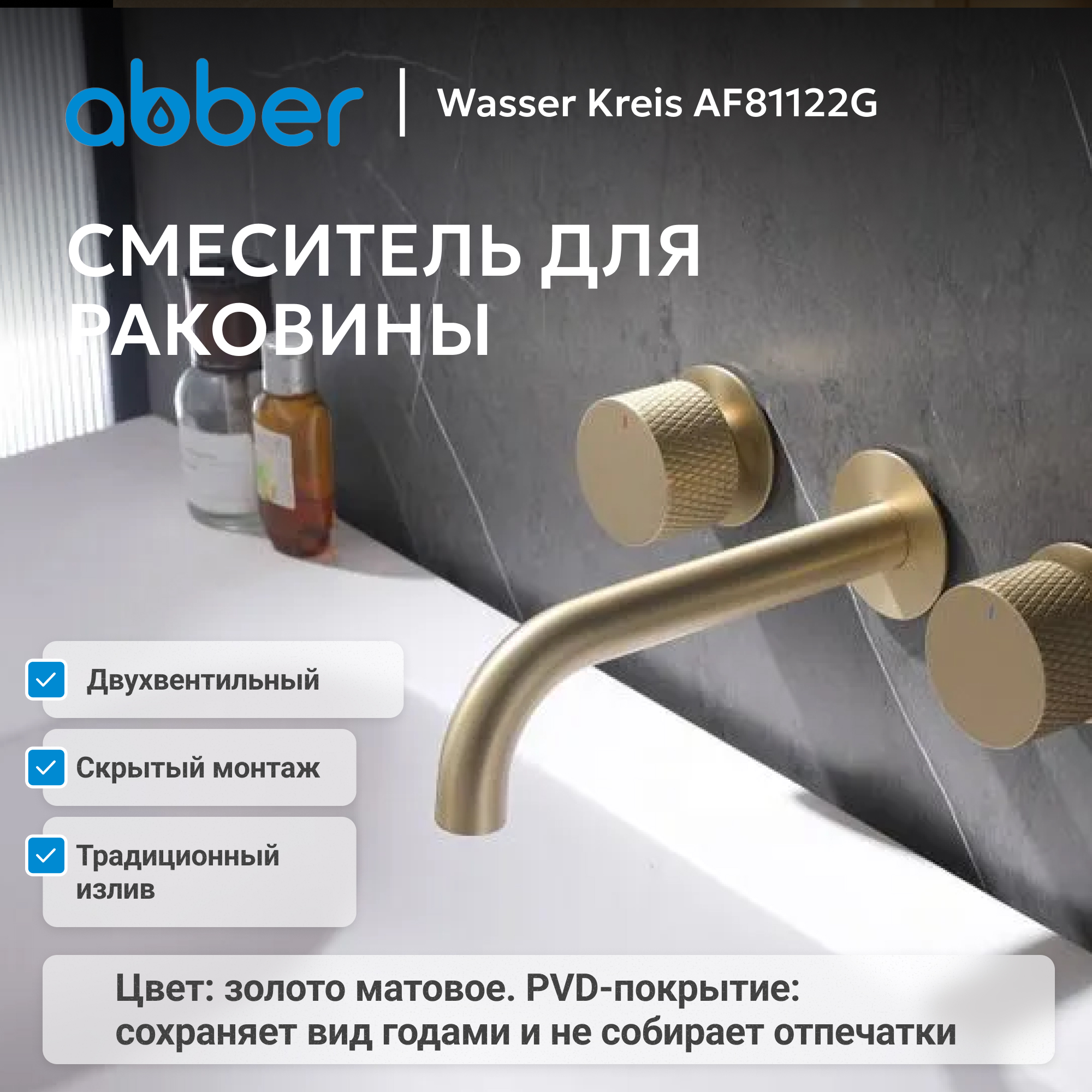 Смеситель ABBER Wasser Kreis AF81122G для раковины скрытого монтажа, золото матовое