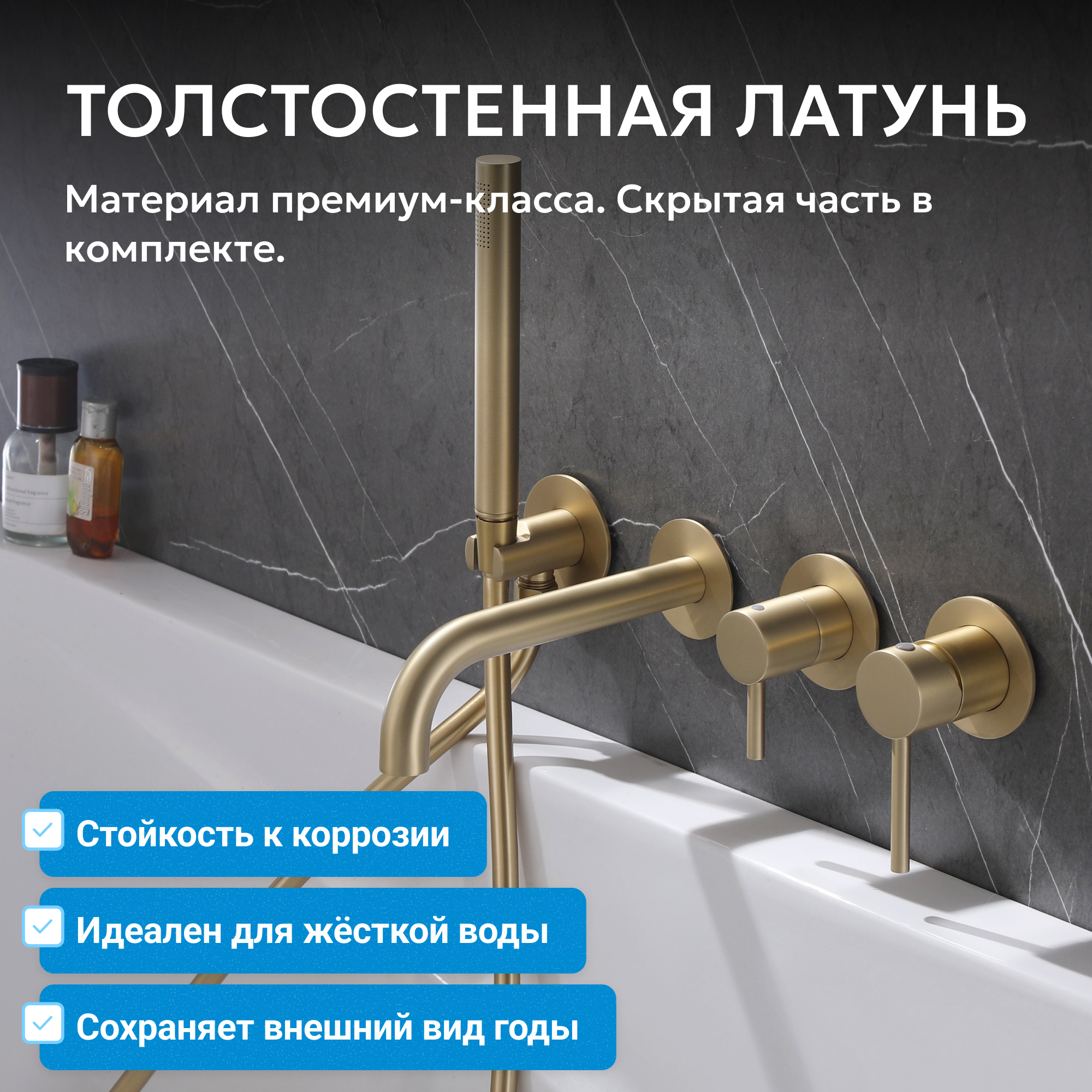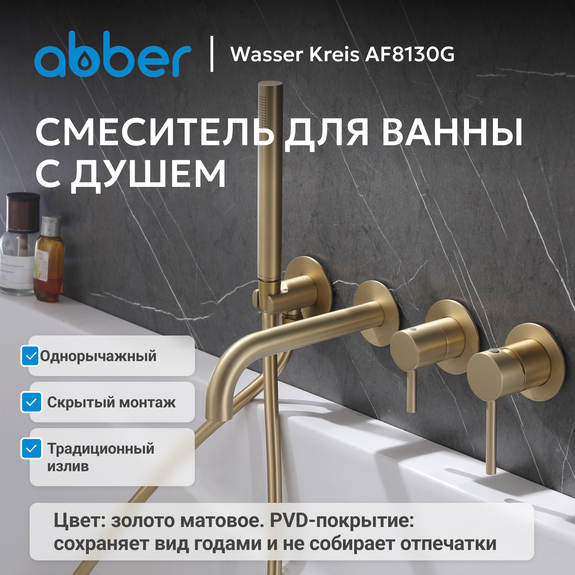 Смеситель ABBER Wasser Kreis AF8130G для ванны скрытого монтажа, золото матовое