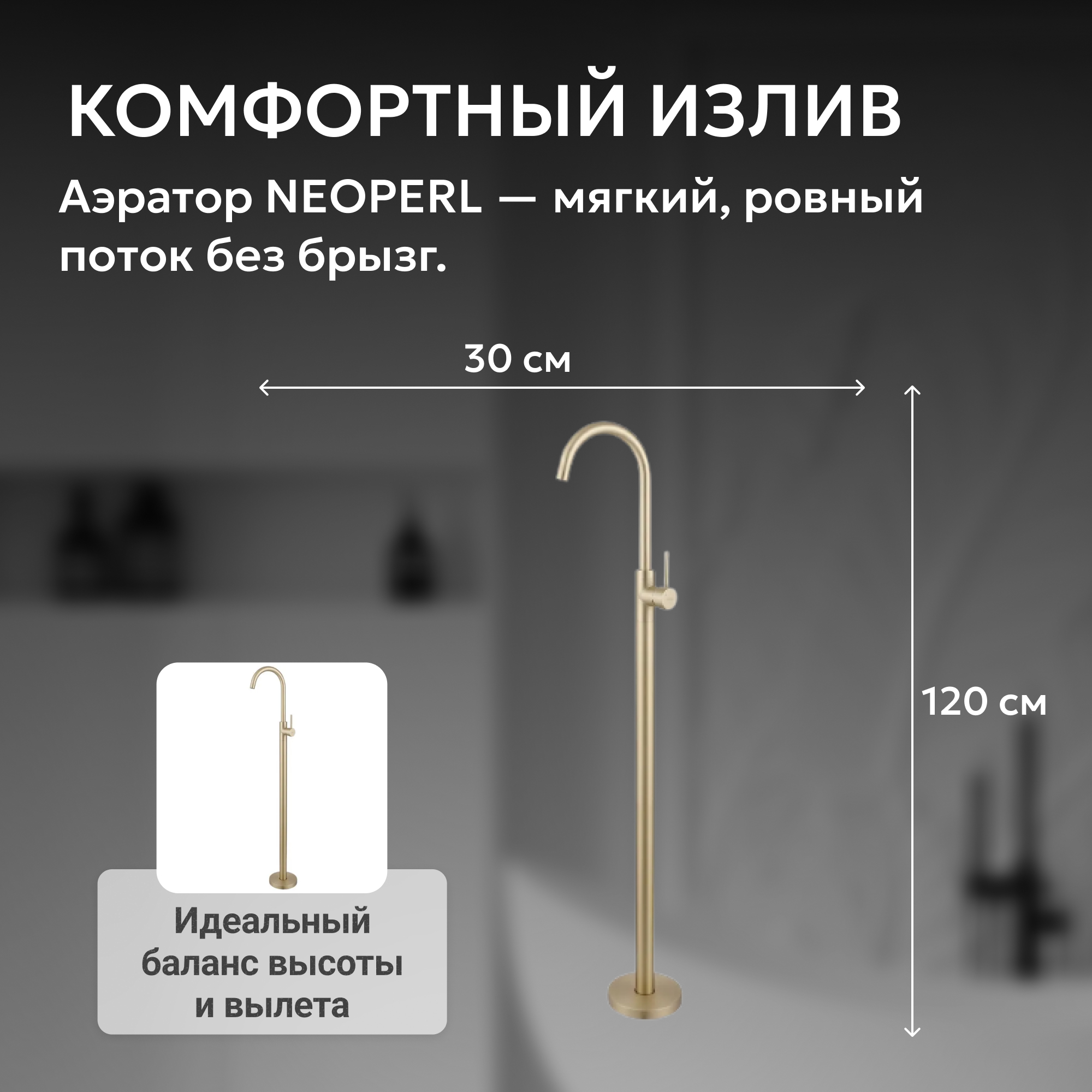 Смеситель ABBER Wasser Kreis AF8141G напольный для раковины, золото матовое