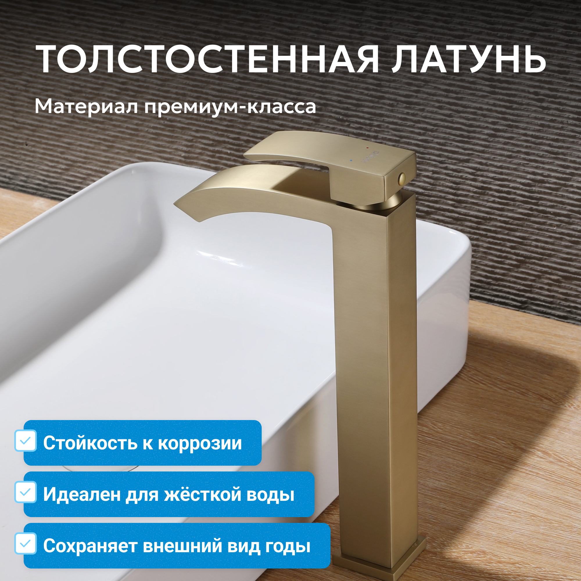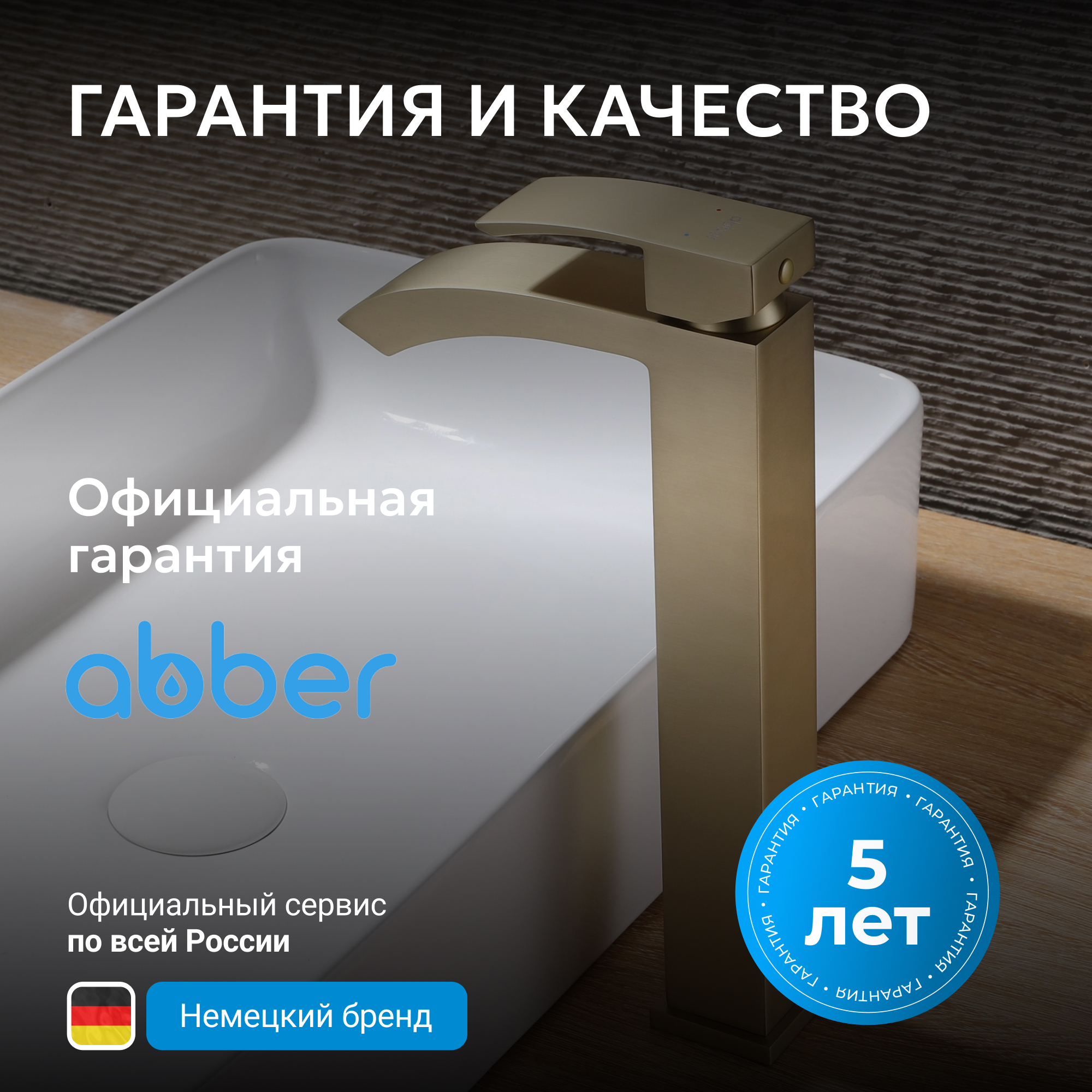 Смеситель ABBER Wasserfall AF8611G для накладной раковины, золото матовое
