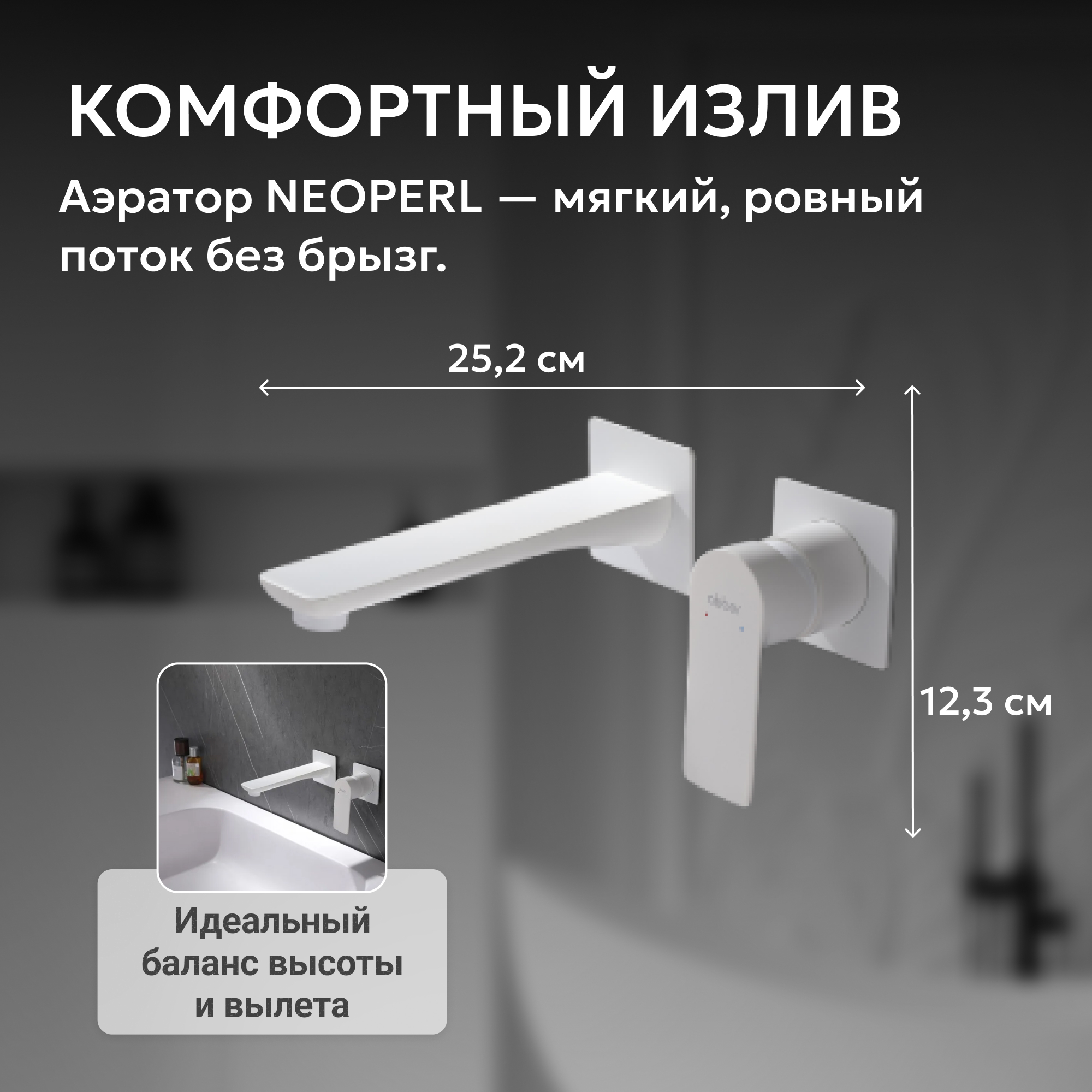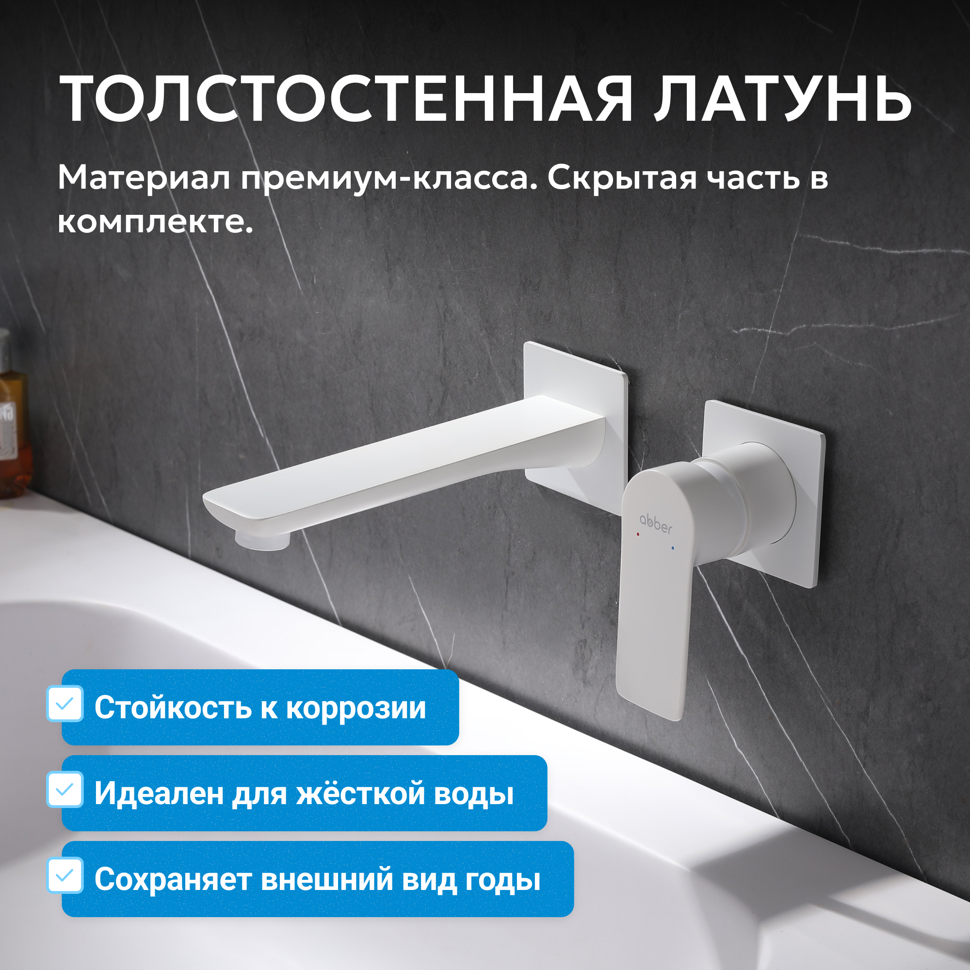 Смеситель ABBER Weiss Insel AF8082FW для раковины скрытого монтажа, белый матовый