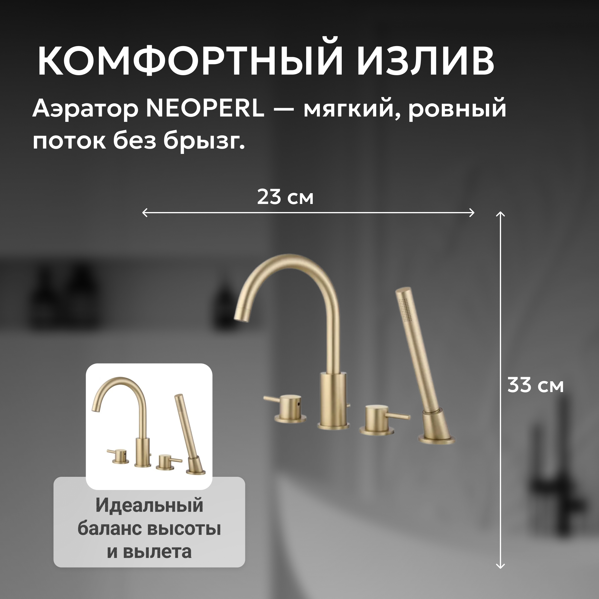 Смеситель ABBER Wasser Kreis AF8113G на борт ванны, золото матовое