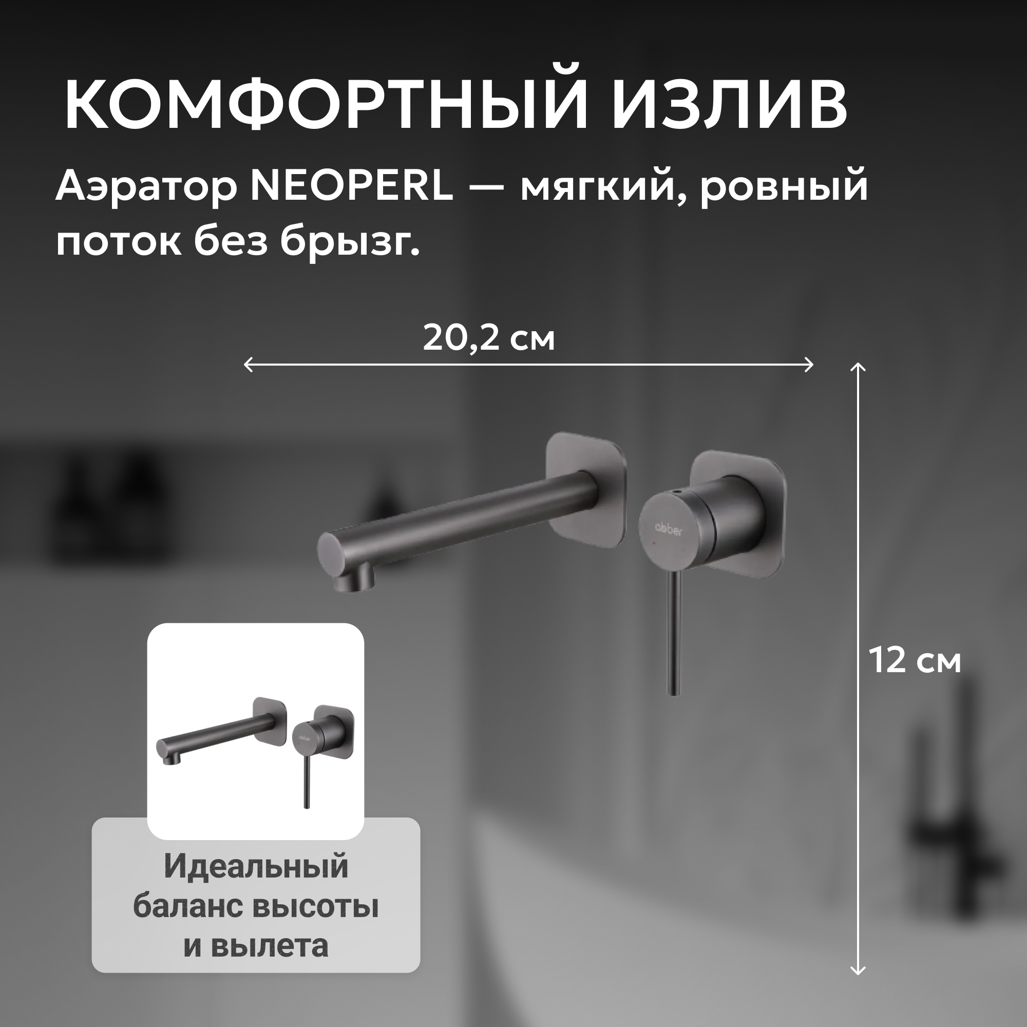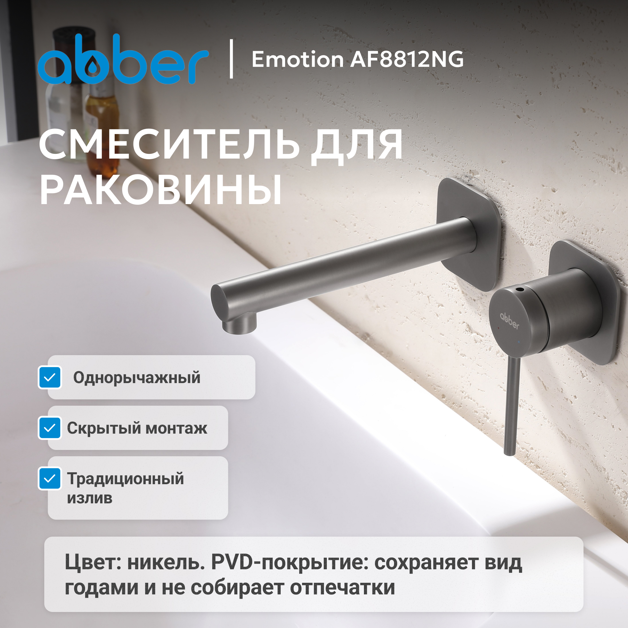 Смеситель ABBER Emotion AF8812NG для раковины скрытого монтажа, оружейная сталь