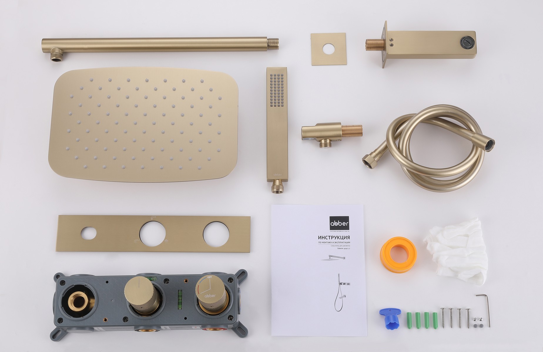 Душевая система ABBER Rund AF8717G скрытого монтажа с изливом, золото матовое