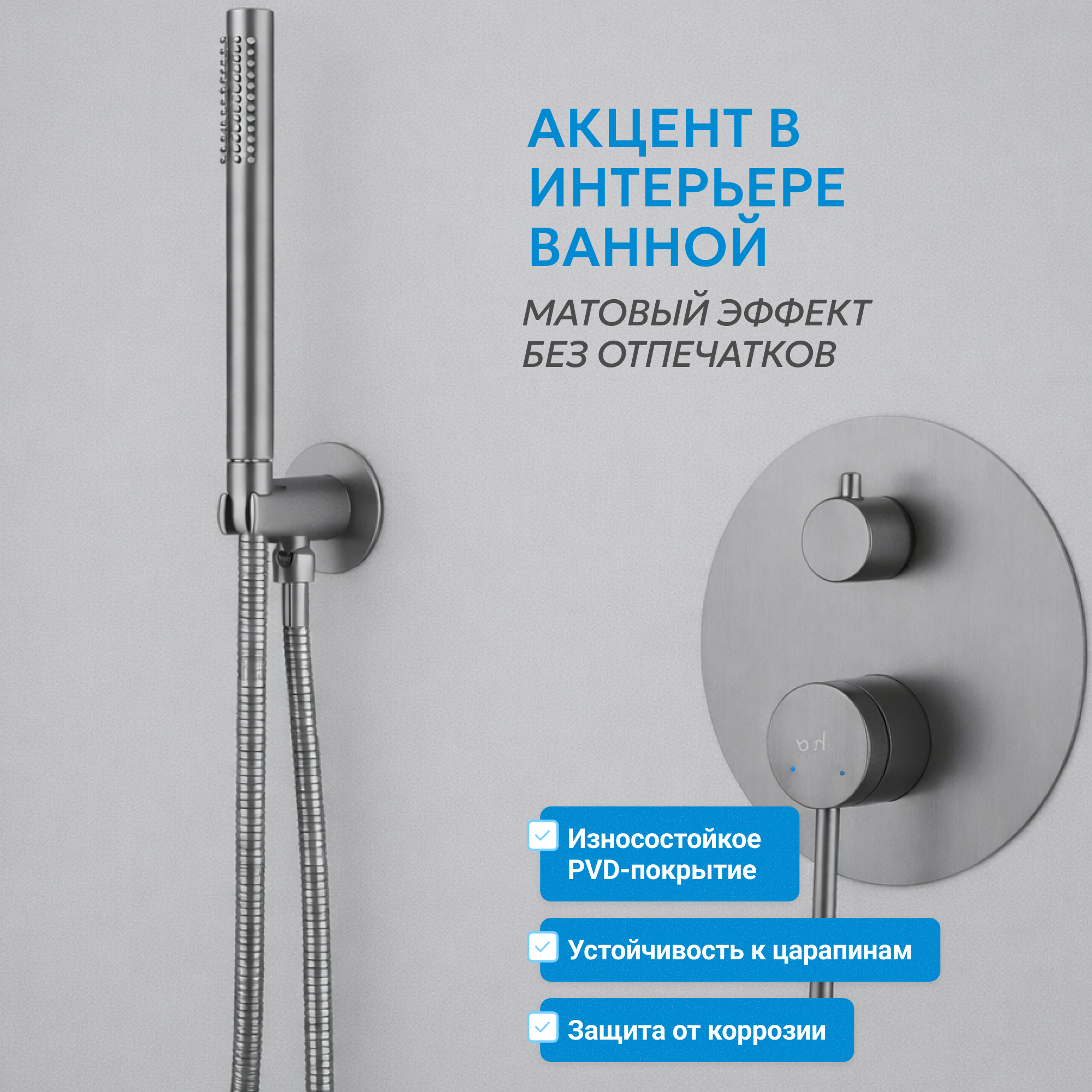 Душевая система ABBER Emotion AF8818NG скрытого монтажа без излива, оружейная сталь