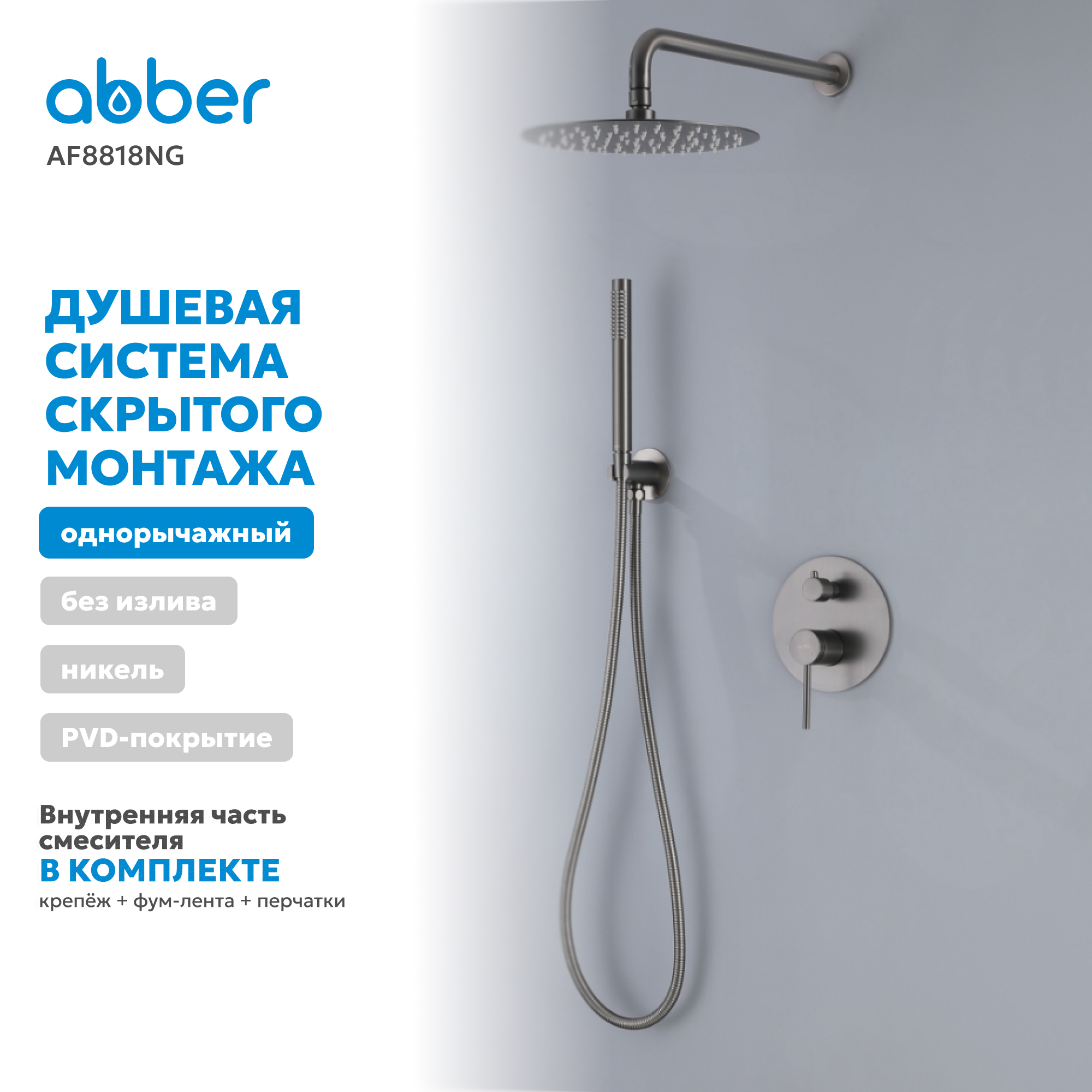 Душевые системы скрытого монтажа / Душевая система ABBER Emotion AF8818NG скрытого монтажа без излива, оружейная сталь