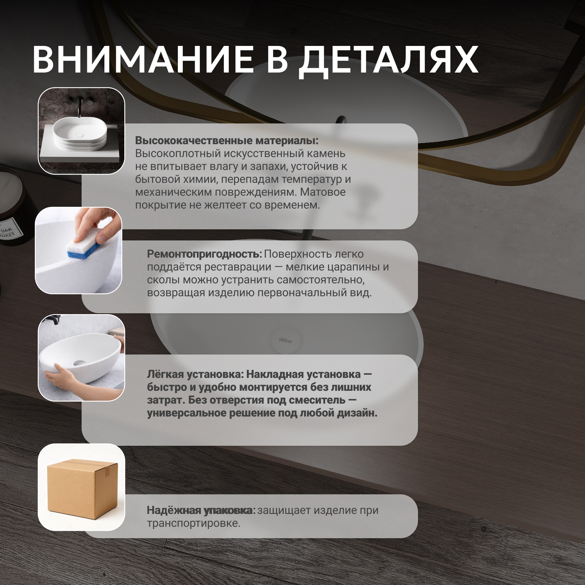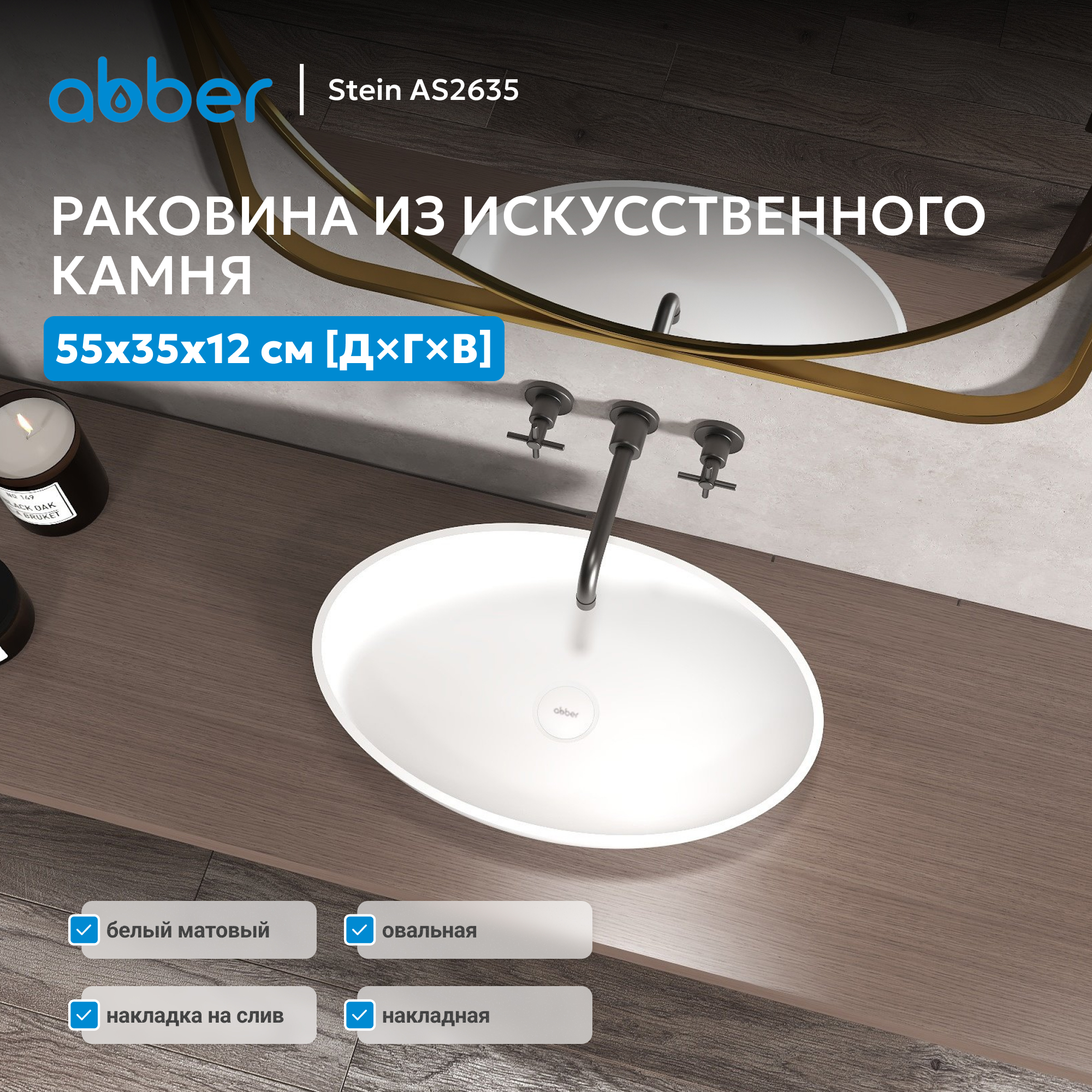 Раковина накладная ABBER Stein AS2635 белая матовая