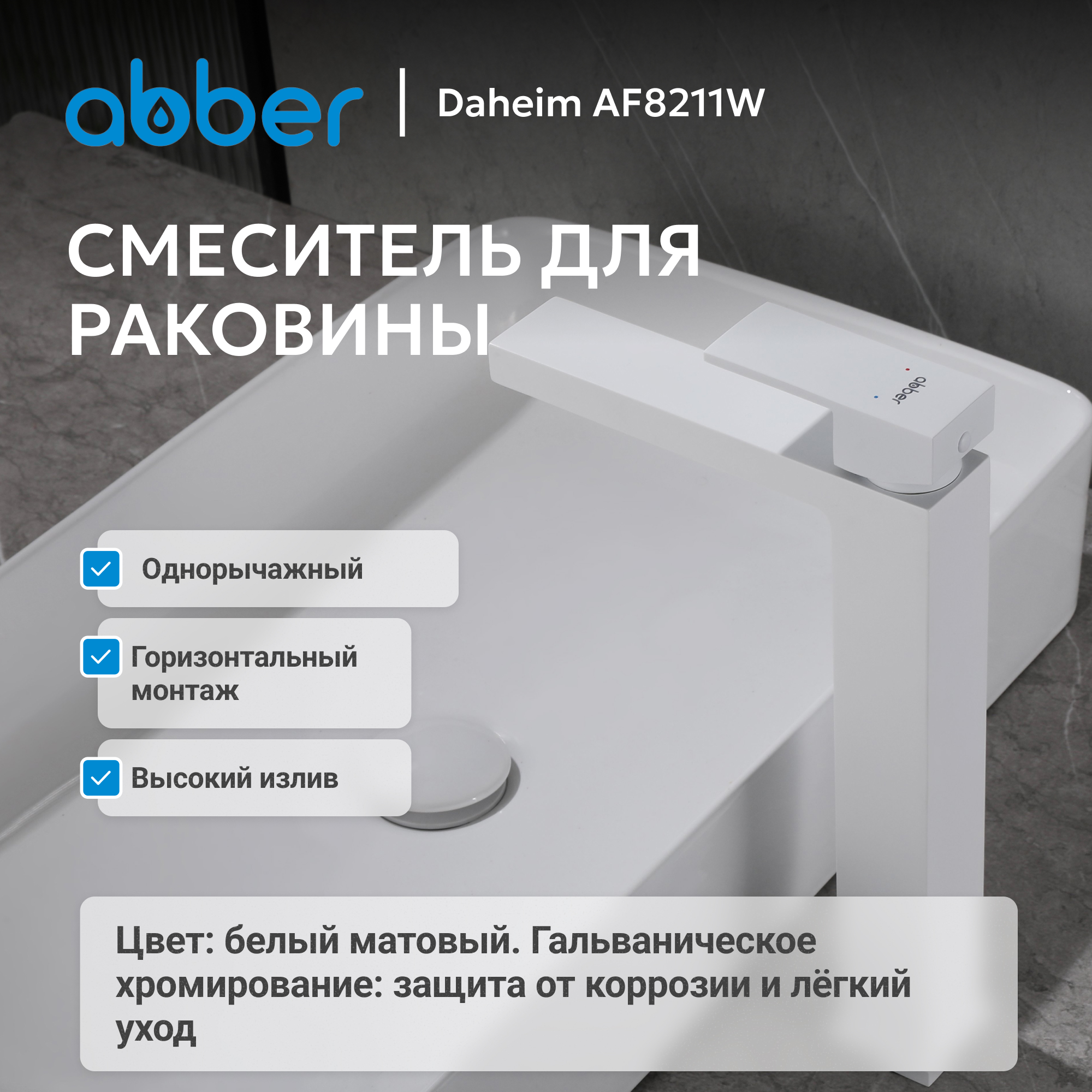 Смеситель ABBER Daheim AF8211W для раковины, белый матовый