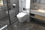 Состоит из подвесного керамического унитаза с каскадным смывом, сиденья для унитаза из дюропласта с микролифтом, инсталляции ABBER AC0105, кнопки смыва из нержавеющей стали, в цвете золото матовое.