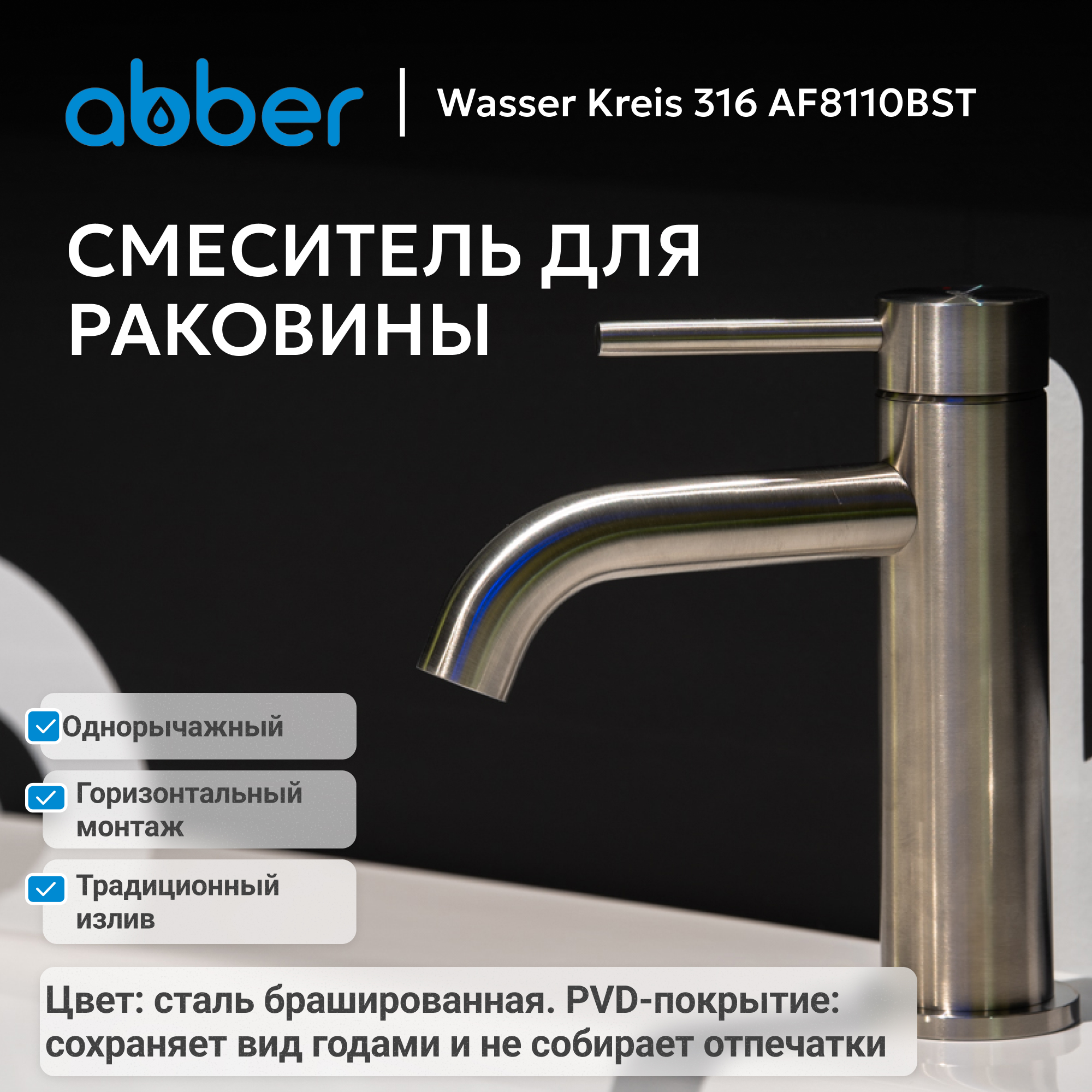 Смеситель ABBER Wasser Kreis 316 AF8110BST для раковины, сталь брашированная