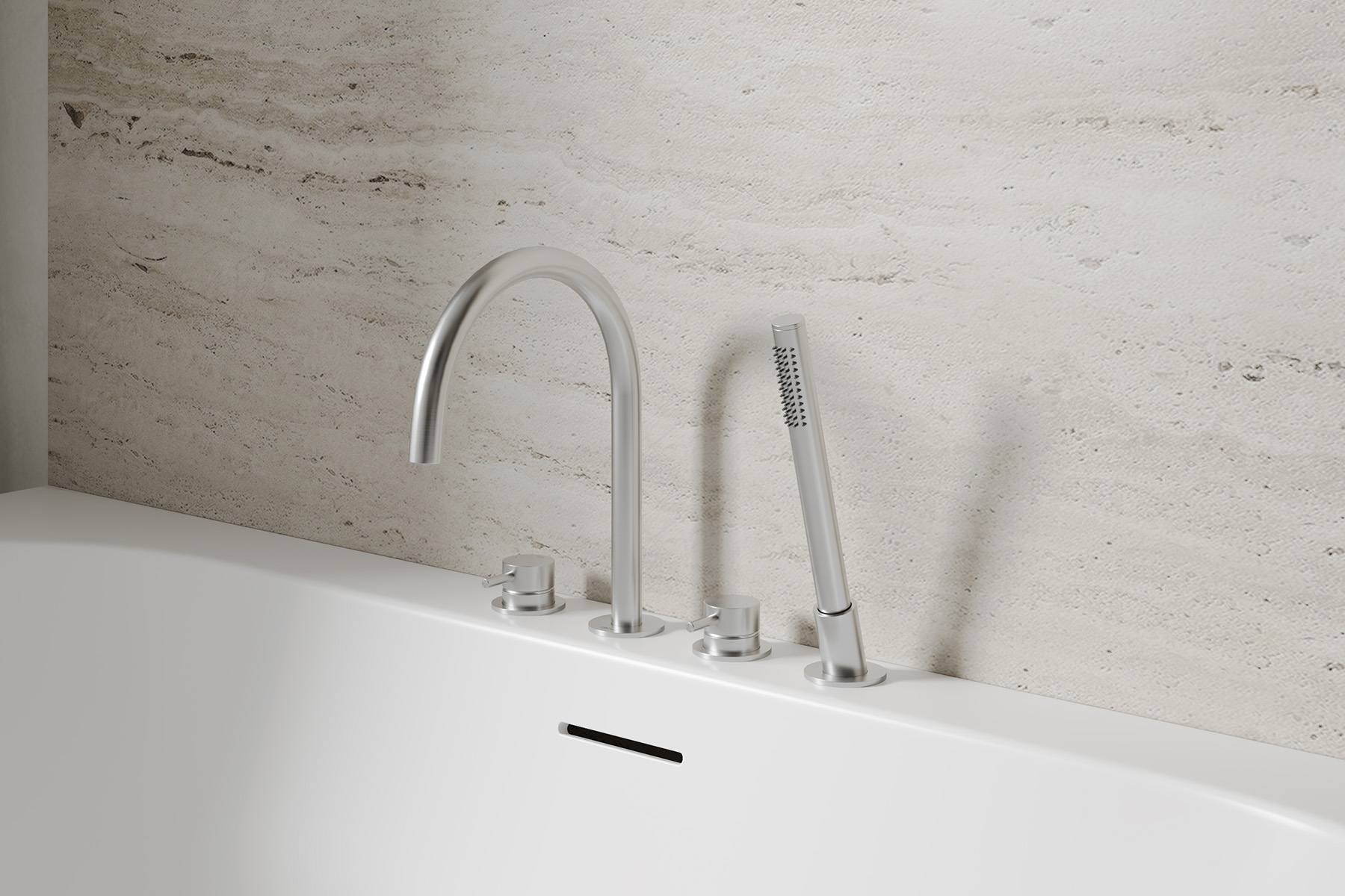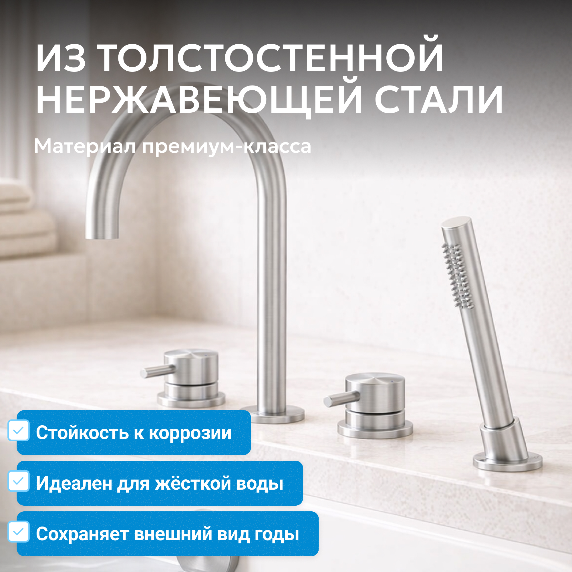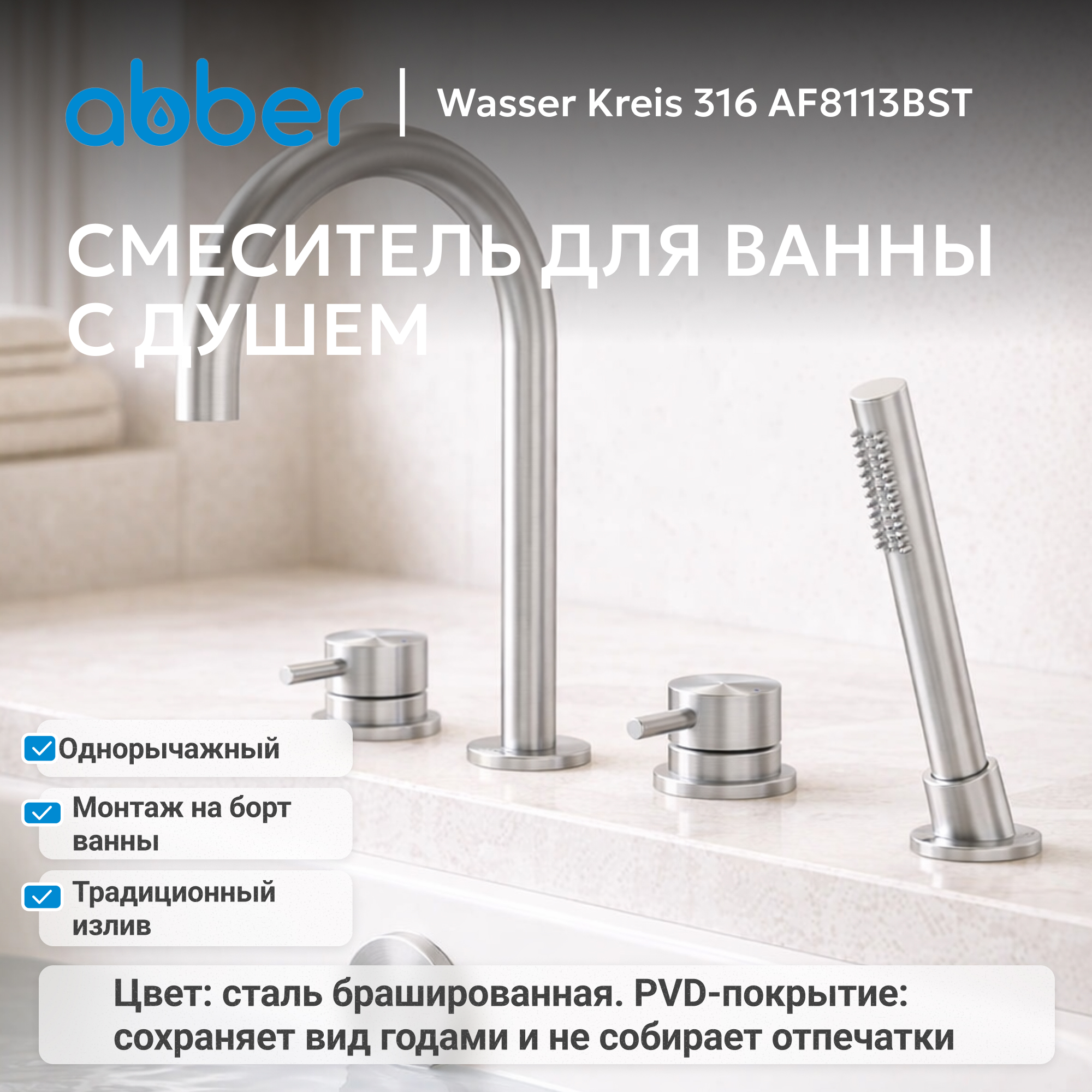 Смеситель ABBER Wasser Kreis 316 AF8113BST на борт ванны, сталь брашированная