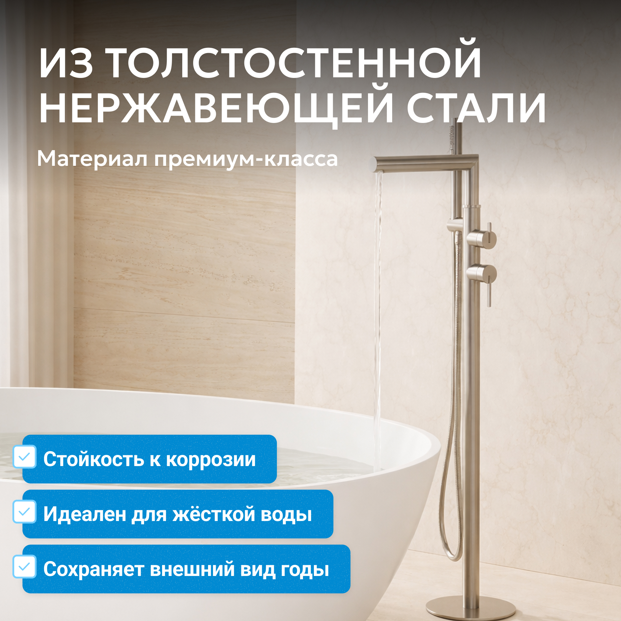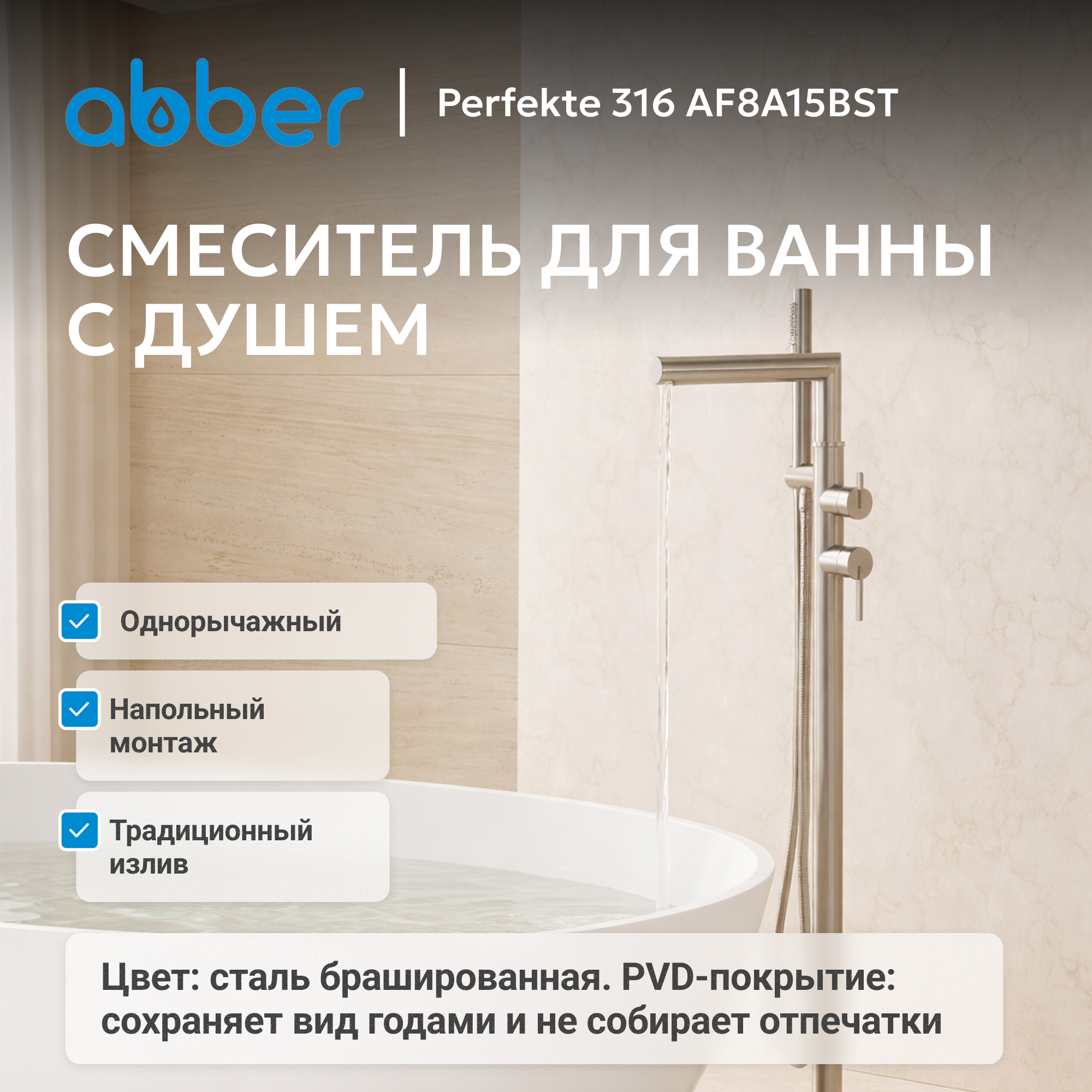 Смеситель ABBER Perfekte 316 AF8A15BST напольный для ванны, сталь брашированная