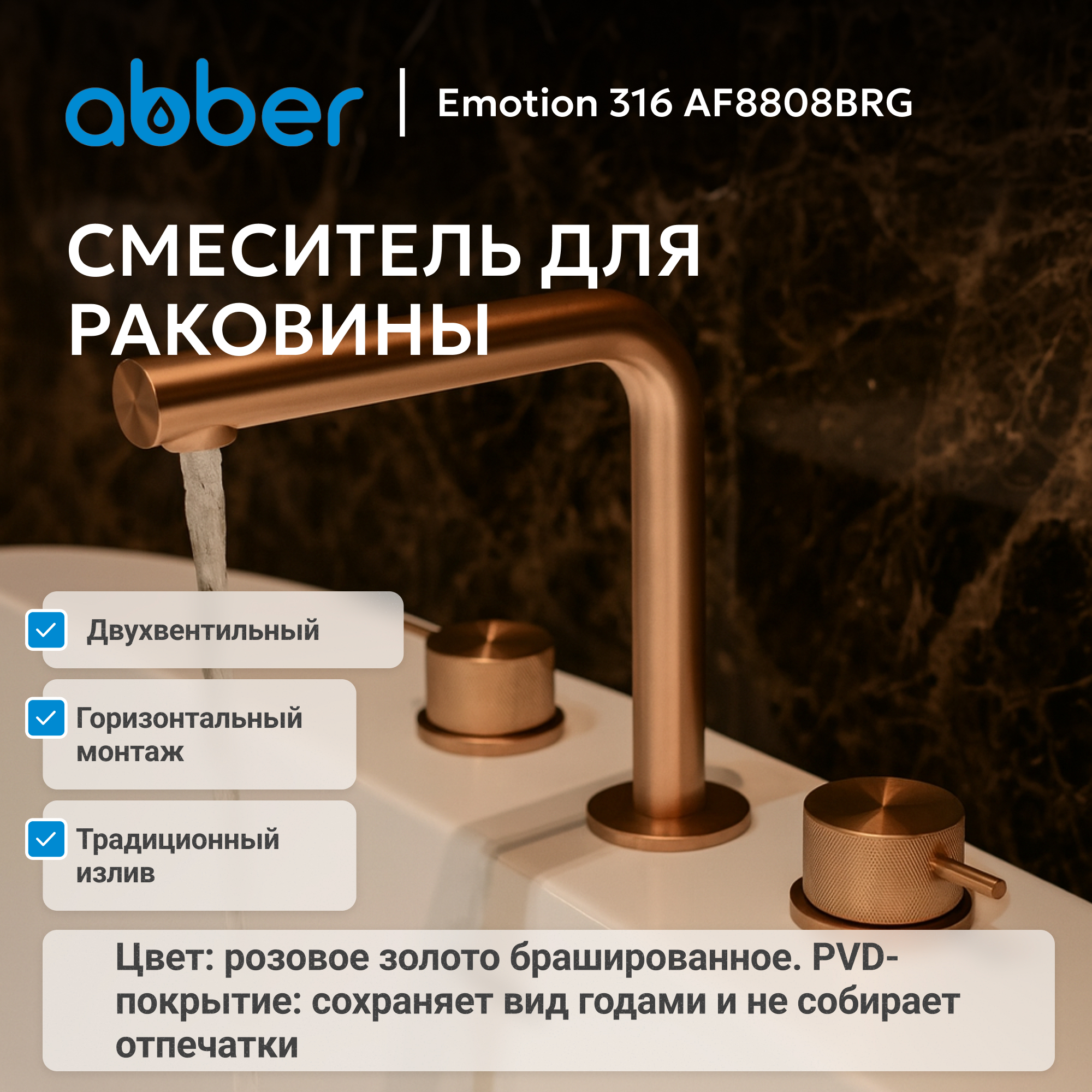 Смеситель ABBER Emotion 316 AF8808BRG для раковины, розовое золото брашированное