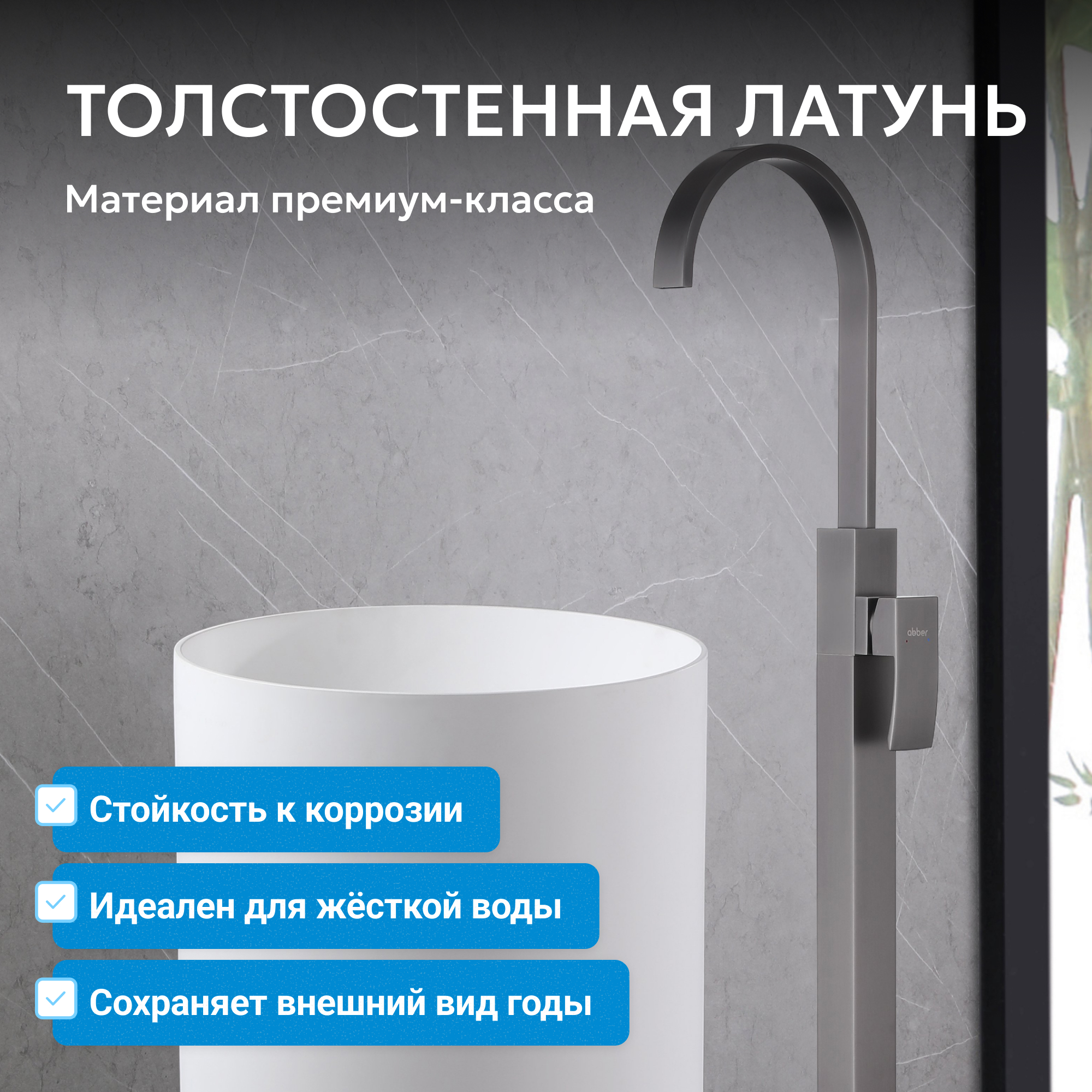 Корпус всех смесителей ABBER изготавливается из латуни техникой цельной отливки при атмосферном давлении, что обеспечивает высокую прочность изделия и устойчивость к перепадам давления.
