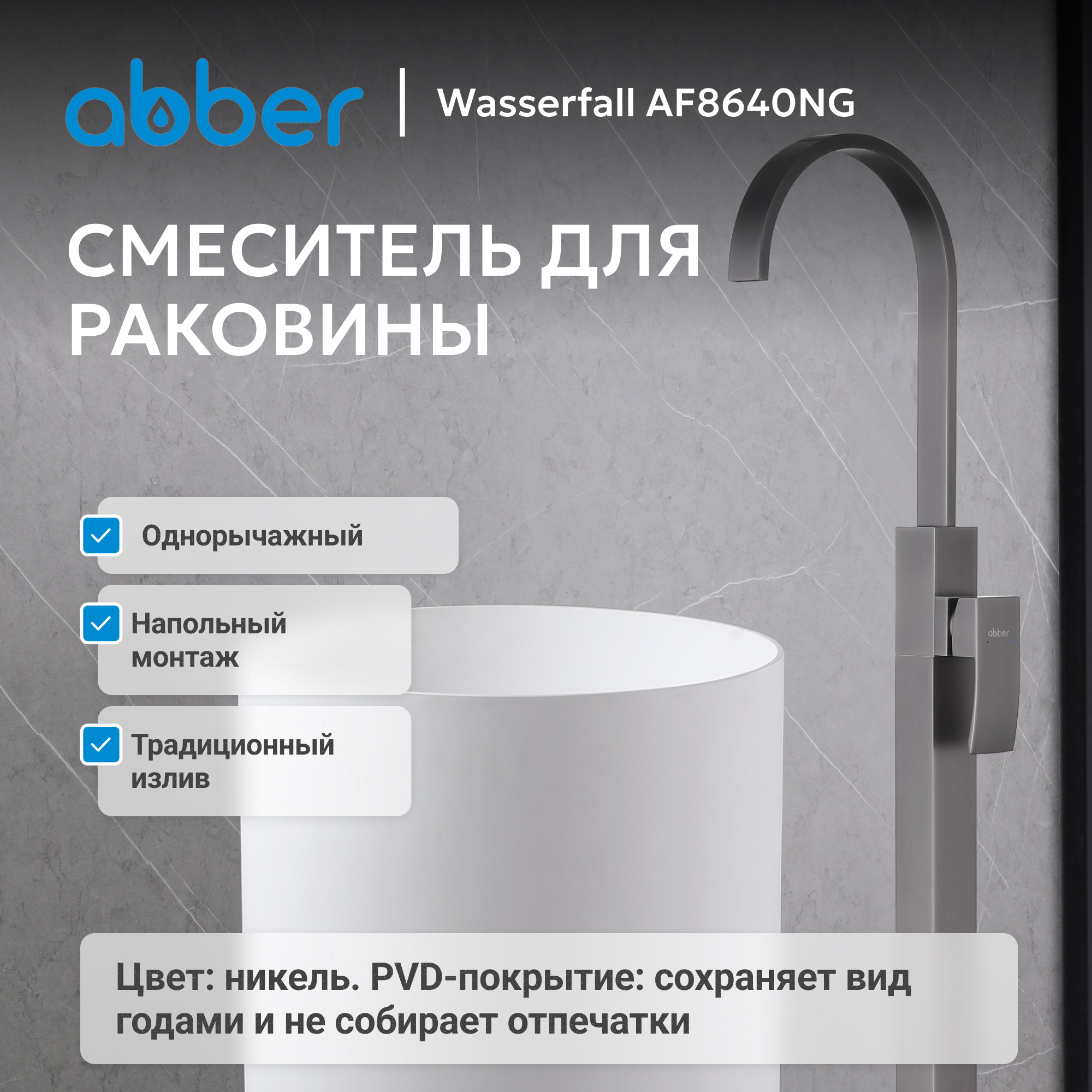 Смеситель ABBER Wasserfall AF8640NG напольный для раковины, никель