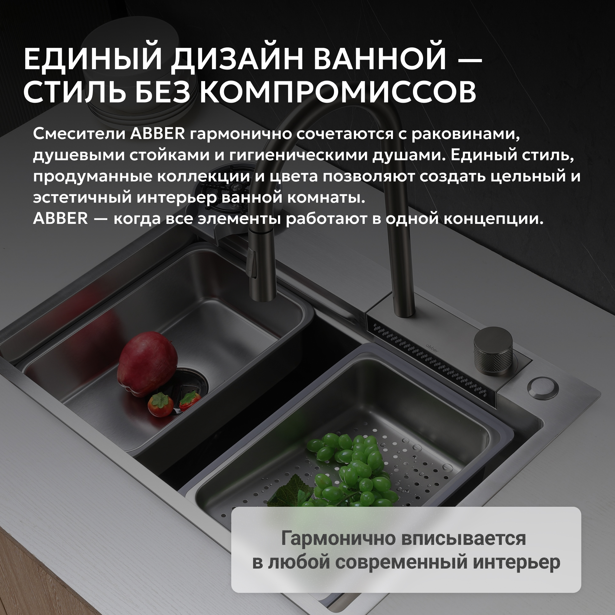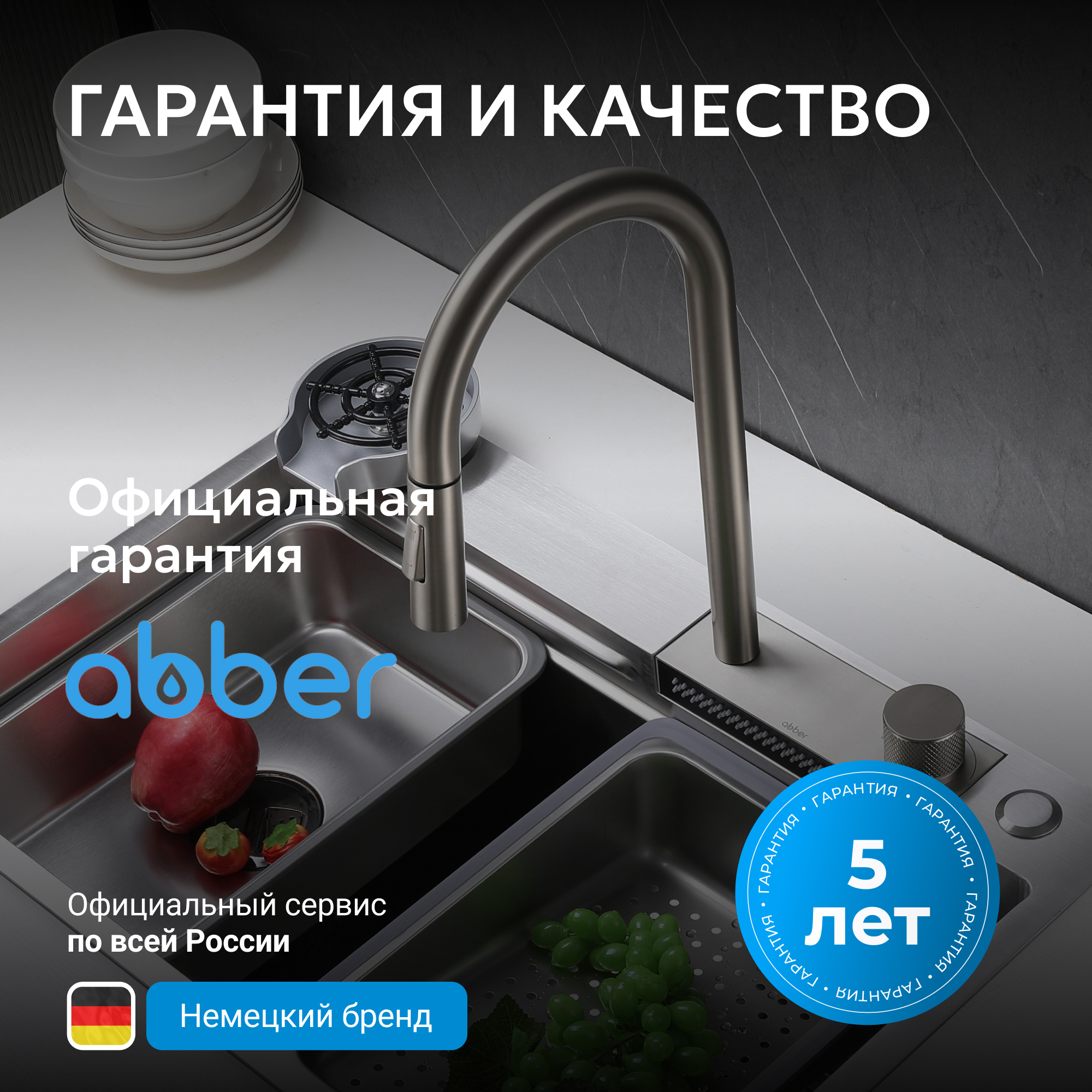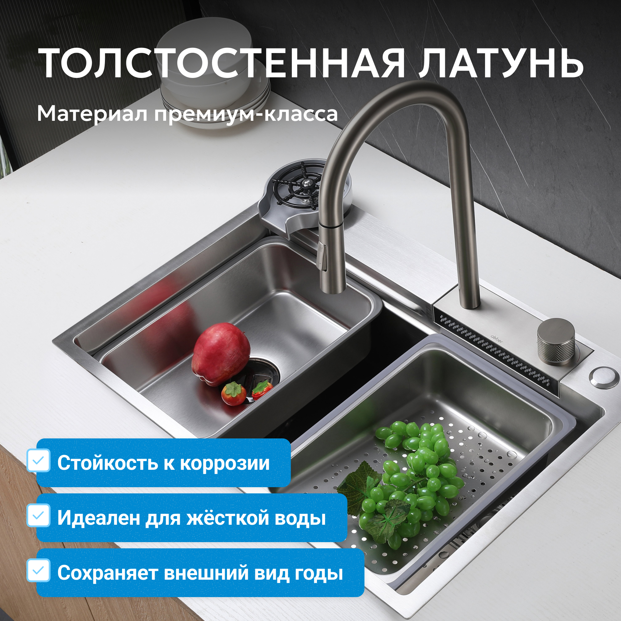 Корпус всех смесителей ABBER изготавливается из латуни техникой цельной отливки при атмосферном давлении, что обеспечивает высокую прочность изделия и устойчивость к перепадам давления.