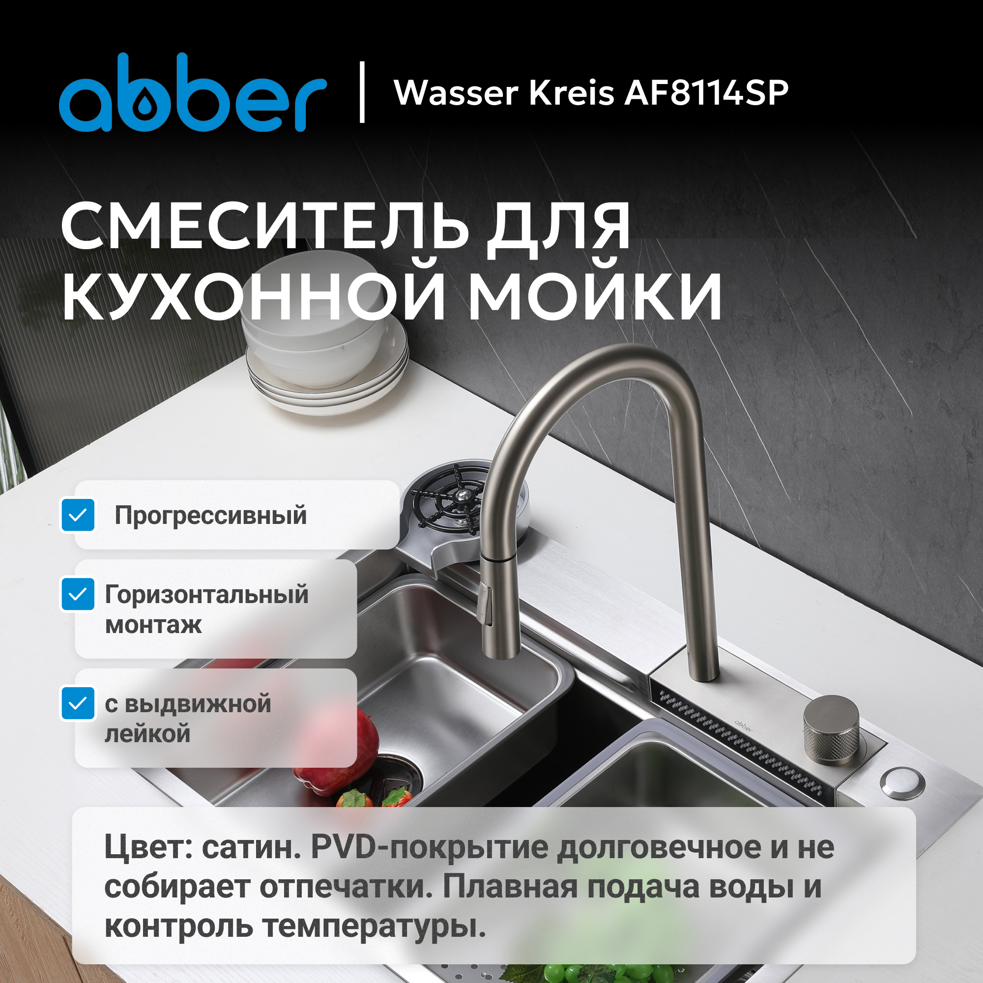 Смеситель ABBER Wasser Kreis AF8114SP для кухни с выдвижной лейкой, сатин