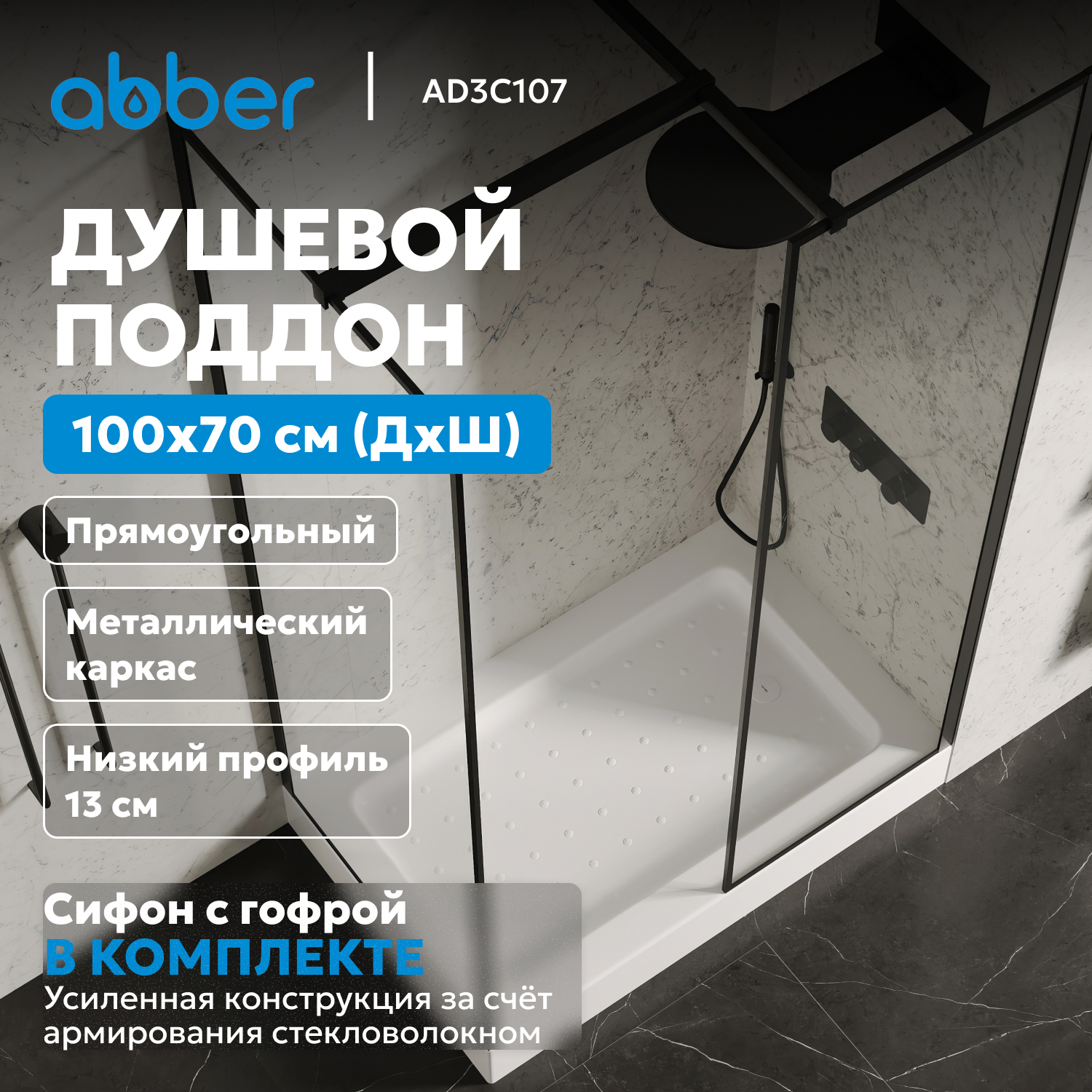 Душевые поддоны / Душевой поддон ABBER AD3C107 100х70 прямоугольный, акриловый, белый