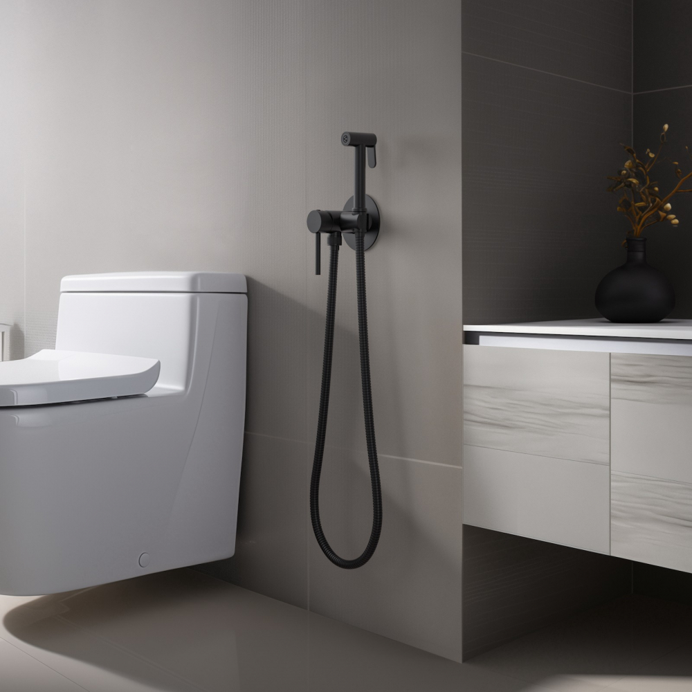 Смеситель Timo Saona 2338/03SM встроенный с гигиеническим душем, черный матовый