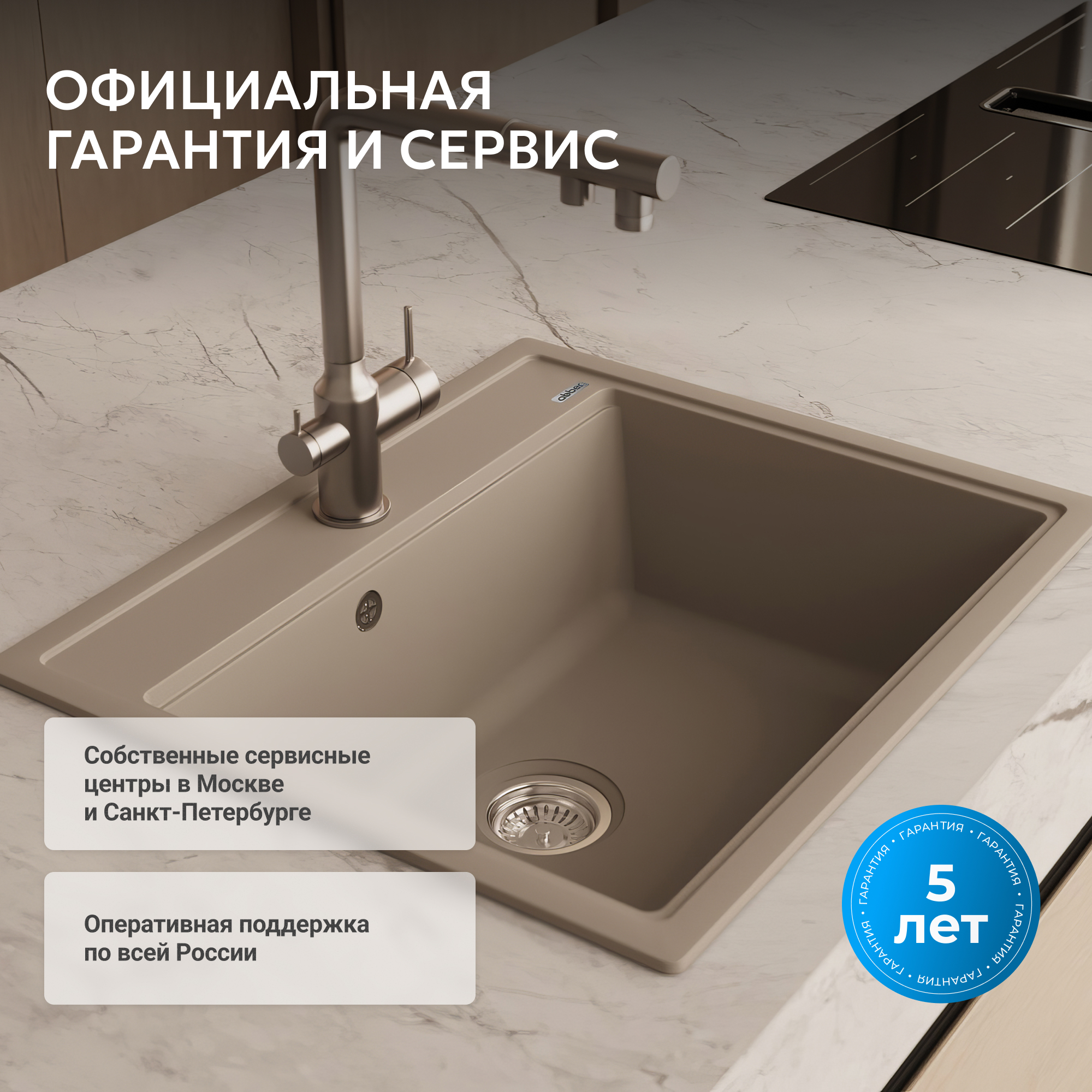 Преимущества кухонных моек ABBER Quarz из кварцевого композита: