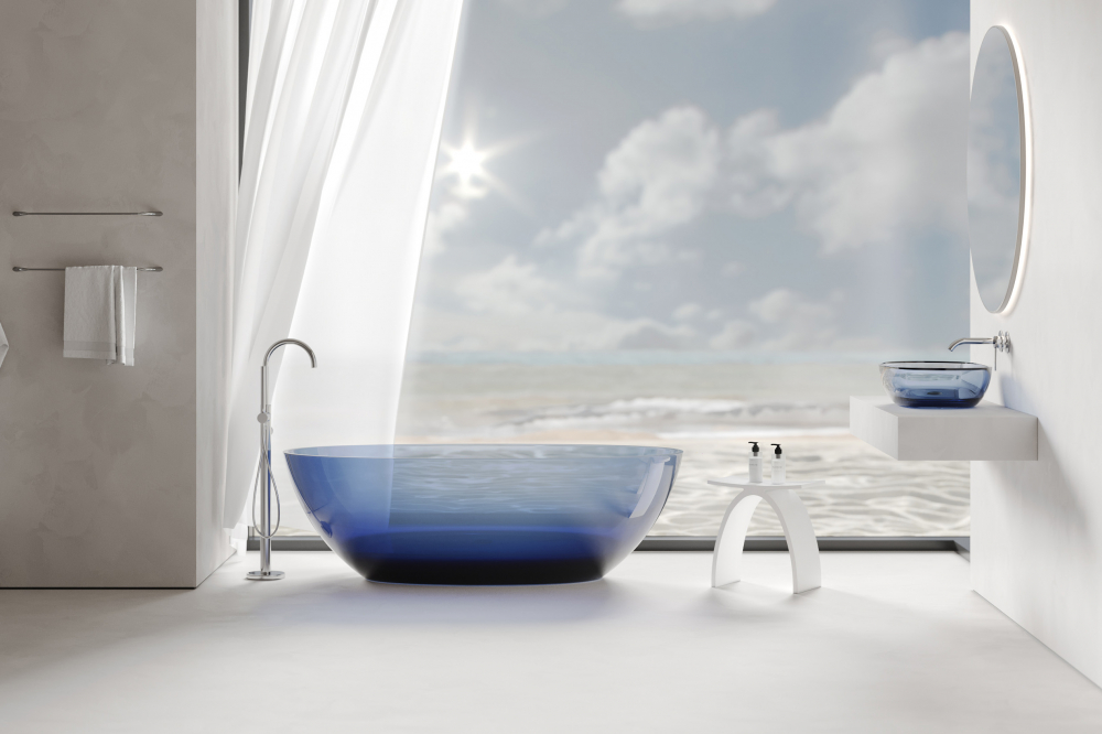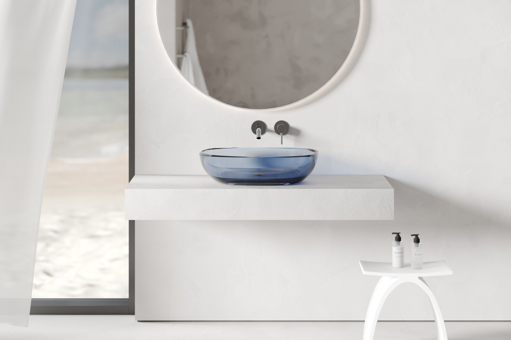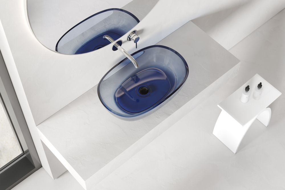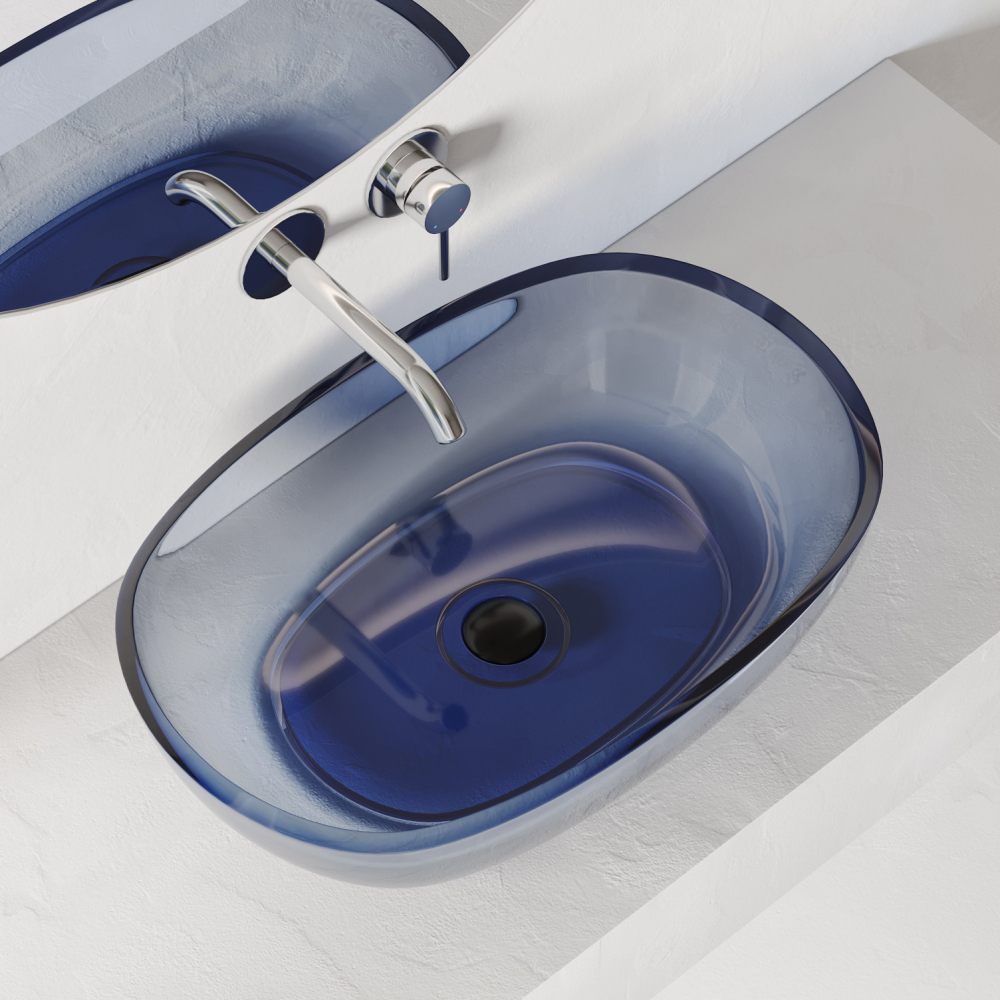 Раковина накладная прозрачная ABBER Kristall AT2805Saphir синяя